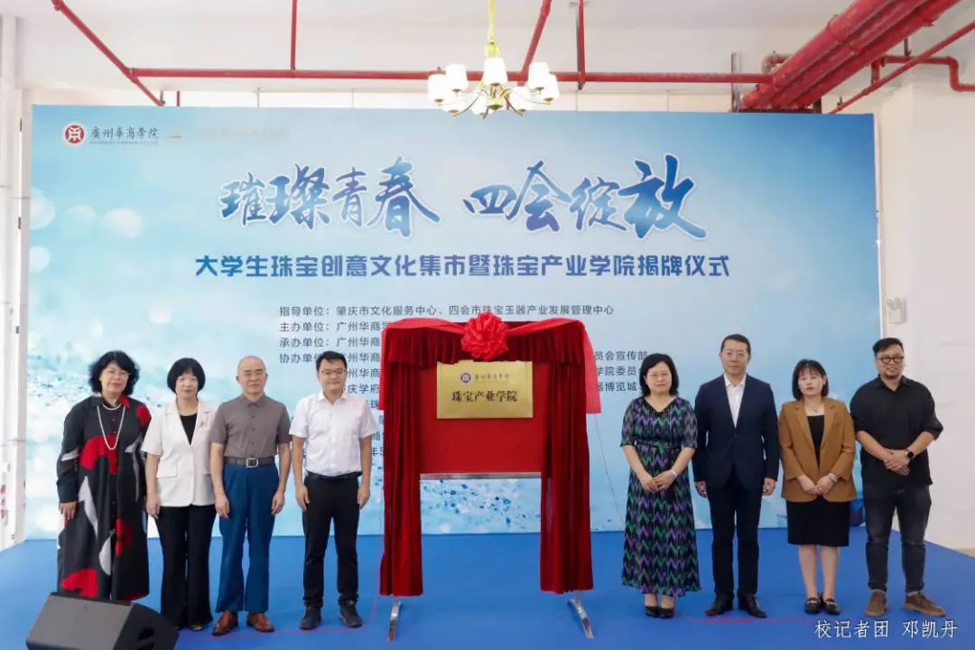 在与会嘉宾与全体师生的见证下,四会市人民政府副市长梁俊杰及学校领导共同揭牌。标志着yabo鸭脖官网珠宝产业学院正式成立。
