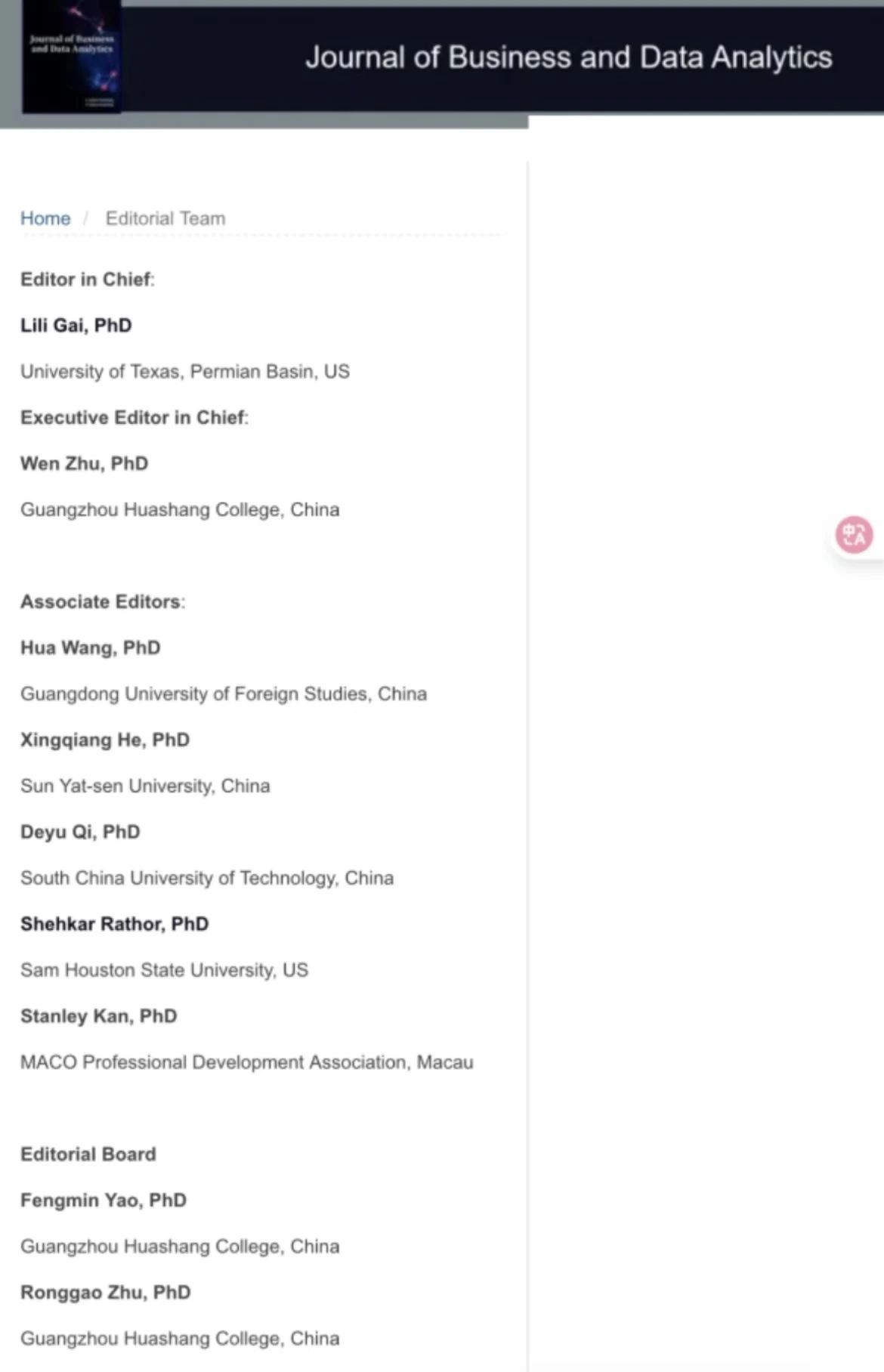 作为大湾区民办高校首本获批的国际英文学术期刊,《Journal of Business and Data Analytics》专注商科与数据科学前沿,汇聚全球智慧,致力于打造国际一流学术交流平台。在华商科教集团和yabo鸭脖官网领导的大力支持下,期刊团队提出“三年内冲击EI收录”的目标,助力学科建设,提升学校国际学术影响力。