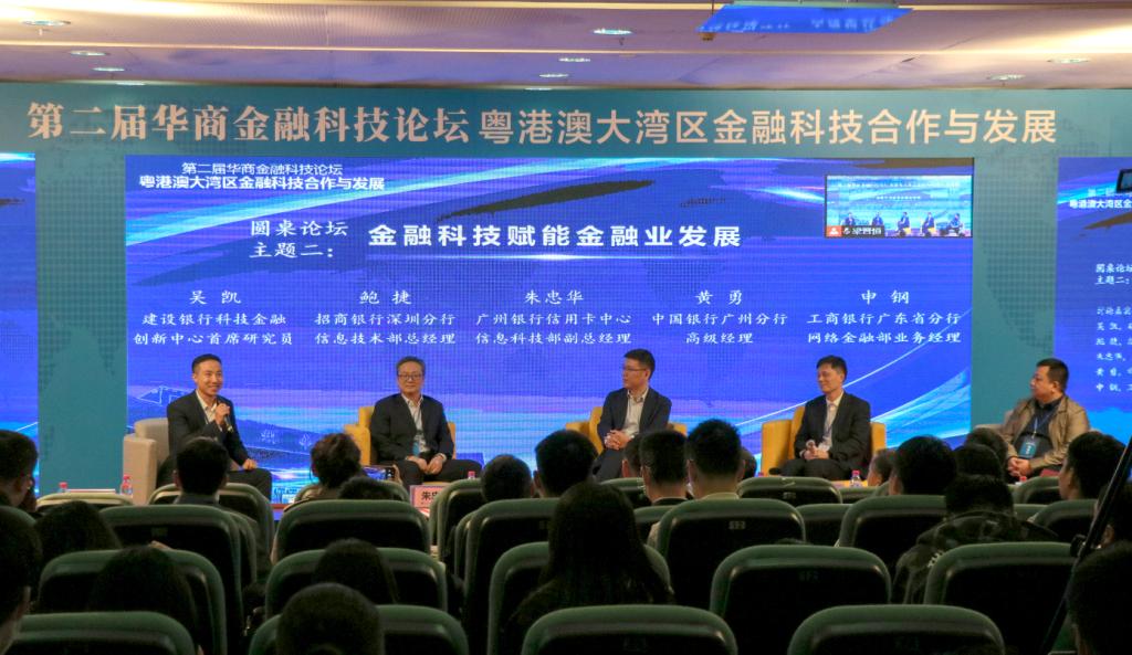 圆桌论坛二的讨论主题为“金融科技赋能金融业发展”,讨论的嘉宾有建设银行科技金融创新中心首席研究员吴凯,招商银行深圳分行信息技术部总经理鲍捷,广州银行信用卡中心信息科技部副总经理朱忠华,中国银行广州分行高级经理黄勇,工商银行广东省分行网络金融部业务经理申钢。吴凯首先分享了建信金科的成立历程,接着介绍了建设银行金融支持创新型企业的经验和建行开发的创新型企业评价分级系统。鲍捷分享了金融科技时代招商银行数字化转型的经验,指出银行现在正从以产品为中心转换为以客户为中心的过程。朱忠华首先介绍了自己在技术公司服务银行的经历,接着介绍了自己在广发银行和广州银行开发数据中台,提高银行运营效率的经验。黄勇介绍了中国银行构建技术应用场景和解决方案的历程。申钢指出银行内部面临着业务部门和科技部门脱节,中间缺少沟通桥梁的问题。