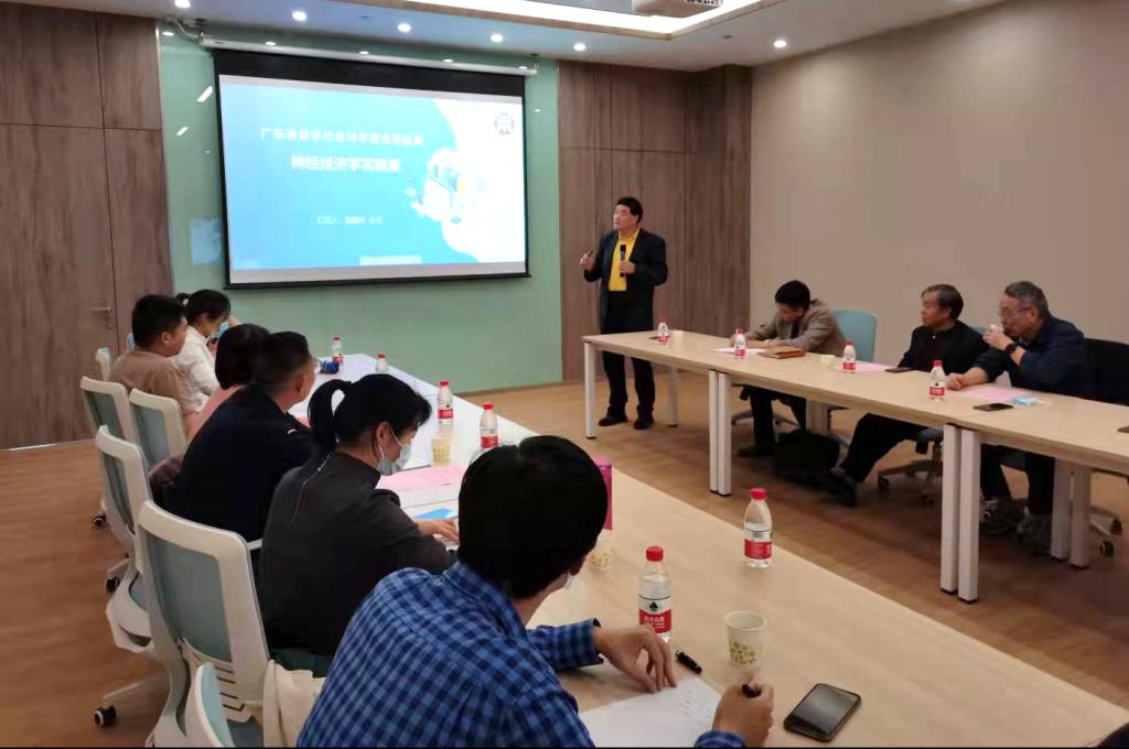 2021年10月21日下午3时,管理学院在华商教师发展中心举办了广东省普通高校哲学社会科学重点实验室-神经经济学实验室建设专题研讨会,由管理学院特聘教授刘耀中作实验室建设报告。张捷副校长、管理学院李招忠院长、秦陇一副院长、余家军副院长、经贸学院朱芳芳副院长、管理学院和经贸学院老师出席了此次研讨会。研讨会由余家军副院长主持。