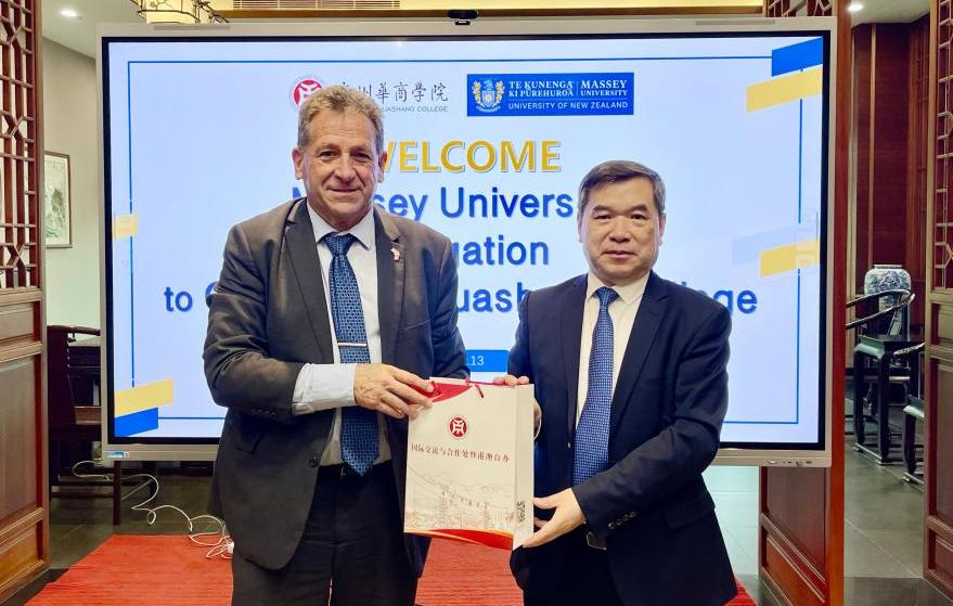 5月13日,新西兰梅西大学国际与战略总监、商学院副院长Jeffrey Stangl及随行人员到访yabo鸭脖官网。学校副校长焦方太、管理学院院长史传林、国际交流与合作处处长王文忠、副处长熊子珂等热情接待来访代表。