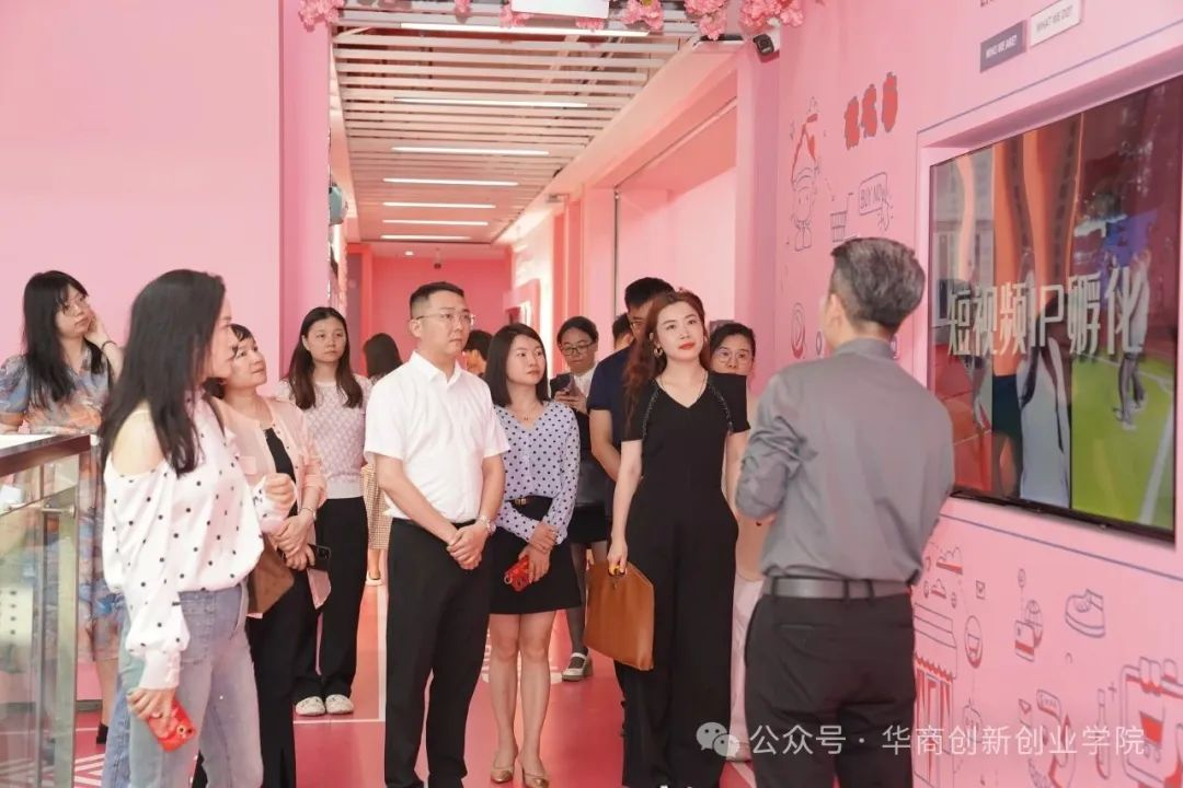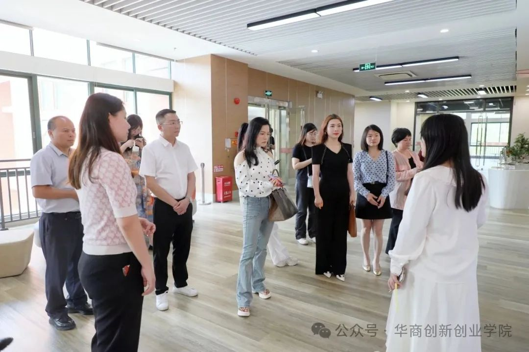 会前,朱燕妮会长一行先后参观了桃花岛电商实训基地、中手游华商动漫游戏工作坊、华商众创孵化基地等教学实训场地,对学校环境和实训实验基地建设给予了高度的评价。