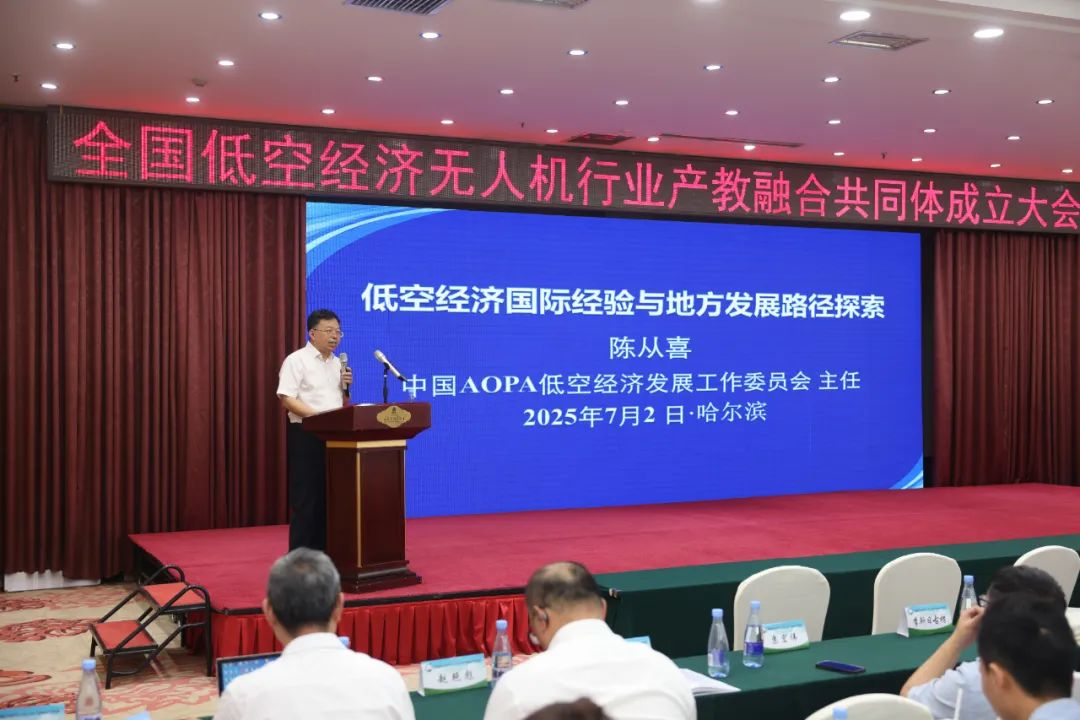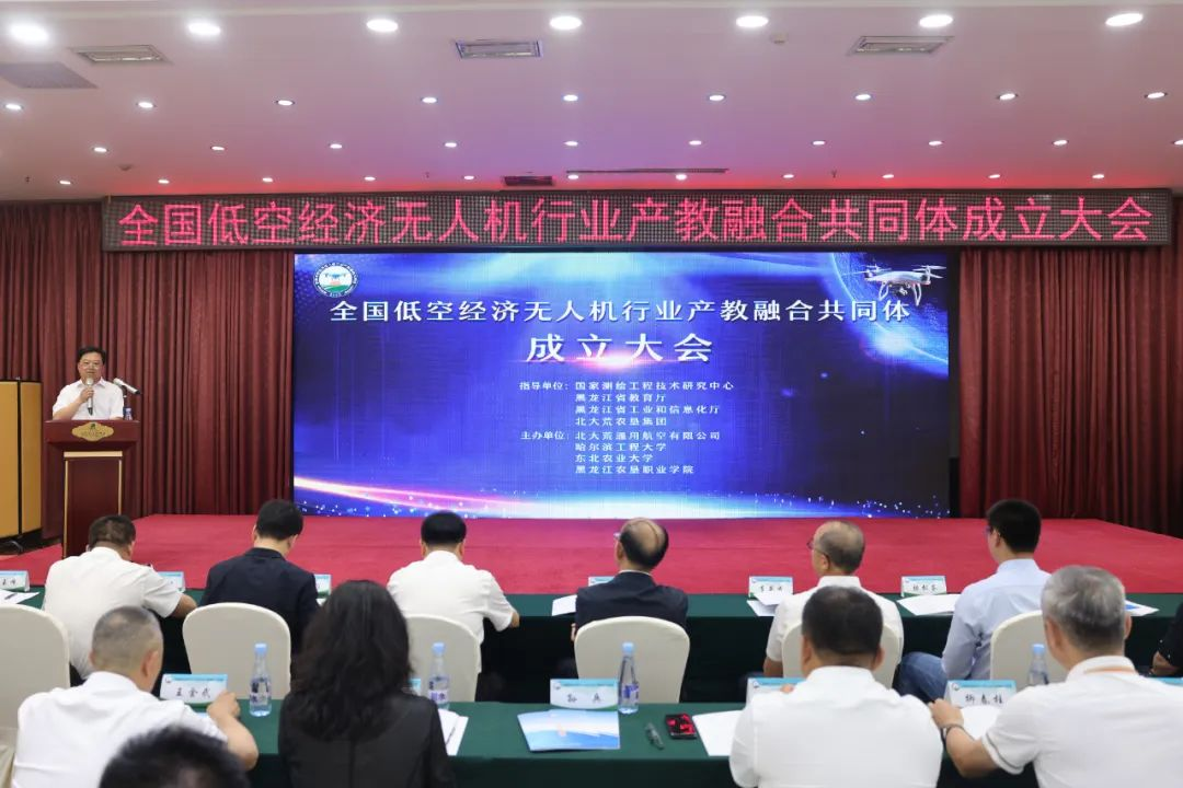 2025年7月2日,全国低空经济无人机行业产教融合共同体成立大会在哈尔滨北大荒国际饭店举行。共有来自省内外的103家知名企业、63家院校、10家行业协会和科研单位的代表参加大会,共同见证了这一行业里程碑。
