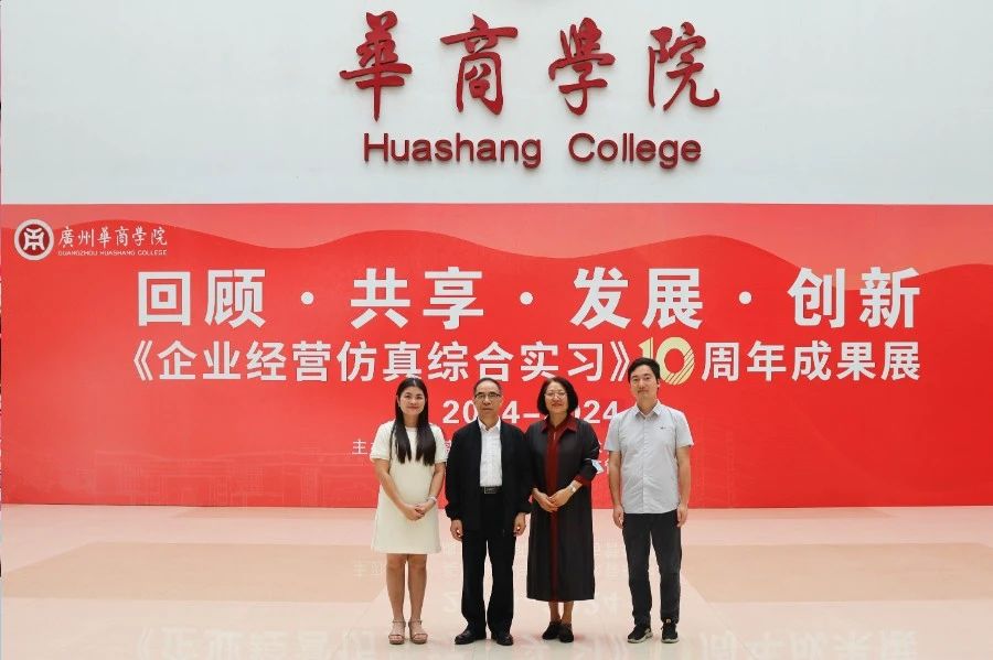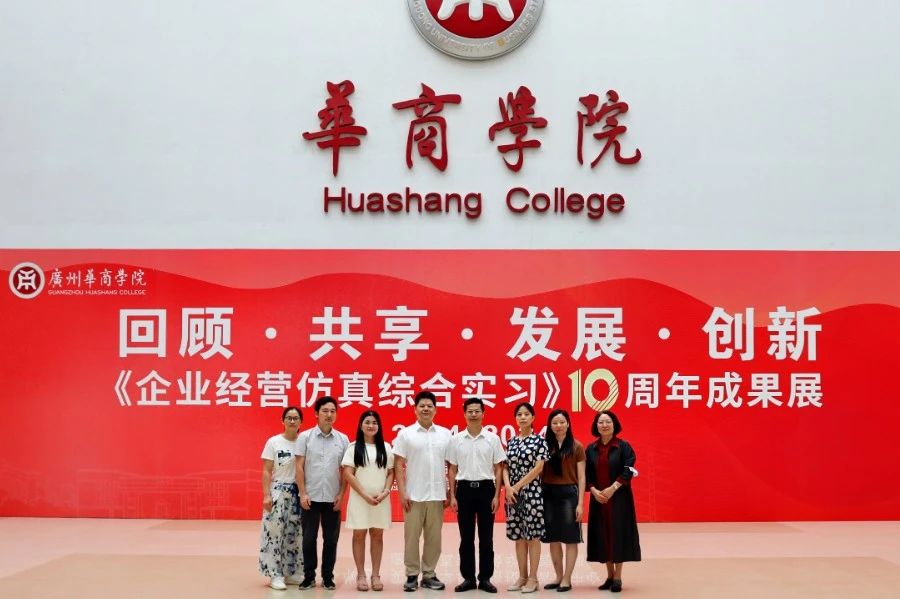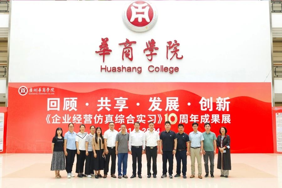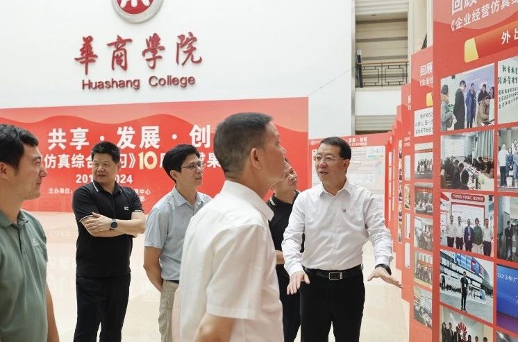 华商教育集团董事长廖榕就,学校总督学,党委书记陈玉欢,副校长刘少波、吕峻闽,学校顾问郭银华,广东财经大学国家级实验教学中心主任姚维保,副主任李立君,教学部部长陈韦伶,广东白云学院经管中心主任贺雪荣,yabo鸭脖官网会计学院、管理学院、人工智能学院等院系领导及师生,共同参观了《企业经营仿真综合实习》课程10周年成果展,见证了课程发展建设的阶段性“成绩单”。