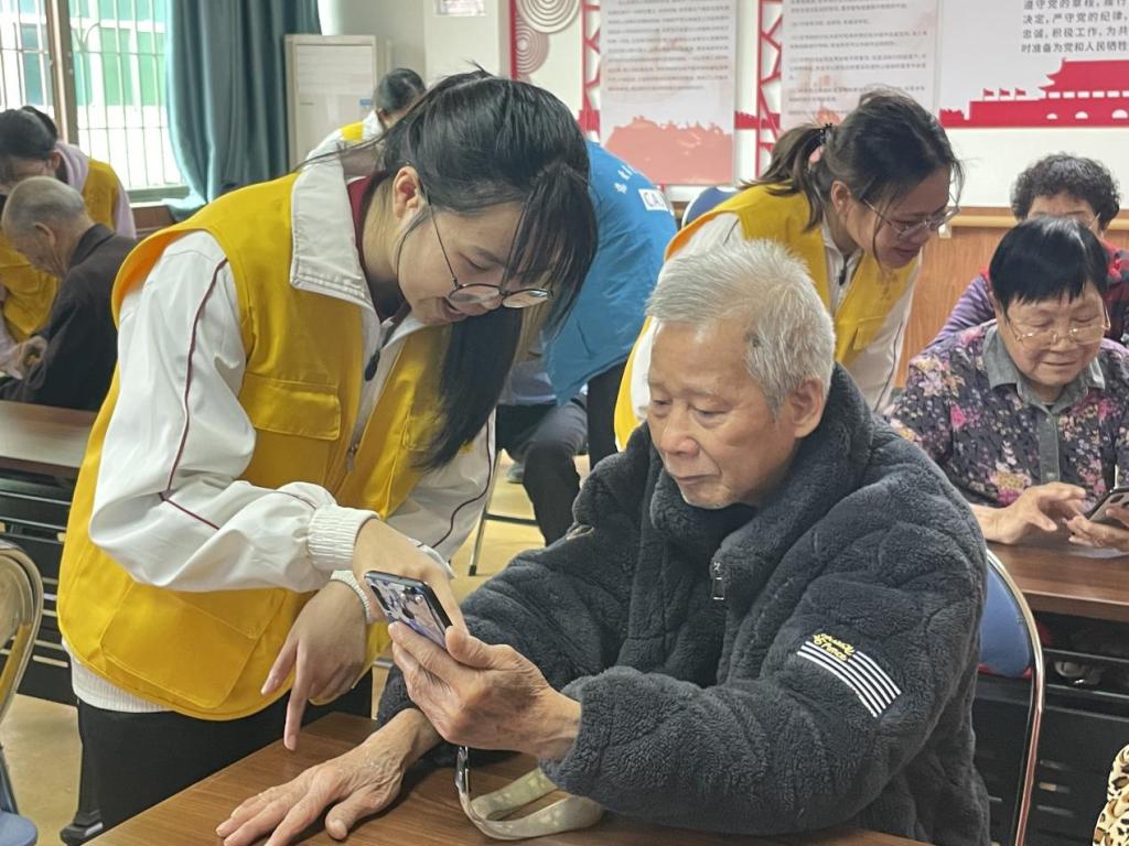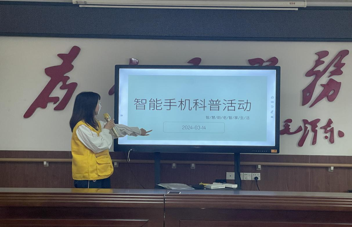 积极认真的工作态度是热爱志愿服务事业的最好写证。志愿者们根据分工安排,使用教学课件认真地向长者们进行智能手机理论知识的普及,包括为长者们讲解智能手机的常用功能,如拨打电话、使用微信等,帮助长者们融入数字化时代。课堂上志愿者们耐心讲解,长者们认真学习,实现了“教”与“学”的双向联结。