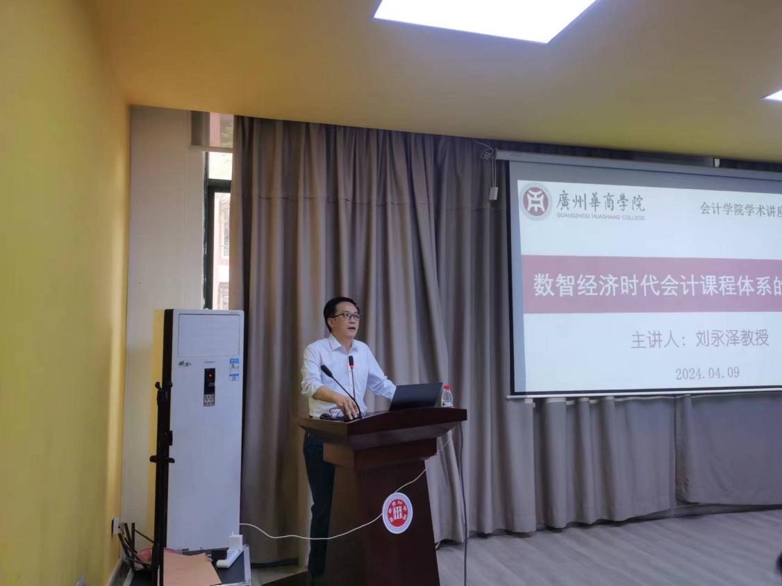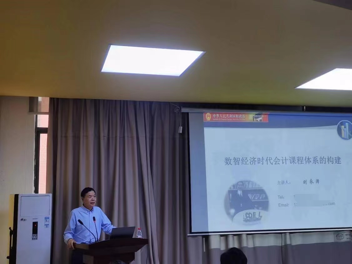 2024年4月9日下午2:30,中国会计学会原副会长,中国会计学会会计教育专业委员会原主任、原东北财经大学会计学院院长、博士生导师、鸭脖特聘教授刘永泽教授在会计学院报告厅为会计学院教师作题为《数智经济时代会计课程体系的构建》的学术讲座。讲座由刘善球副院长主持。学院领导班子成员及全体专任教师出席参加。