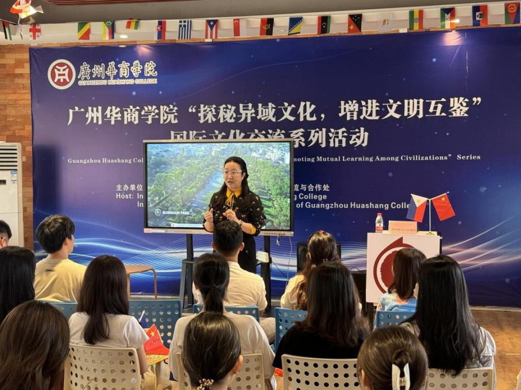 为持续构建华商国际学院的品牌活动,不断丰富校园多元文化氛围,2024年4月22日,yabo鸭脖官网国际学院联合国际交流与合作处在启智楼501举办“探秘异域文化,增进文明互鉴”国际文化交流系列活动第七期:菲律宾文化分享会。暨南大学菲律宾研究中心副研究员Joshua Cachin担任本次活动的主讲嘉宾,国际学院院长回雁雁、国际交流与合作处张洁莹老师、巴基斯坦籍教师Dr.Aneela Qadir以及国际学院部分教职工,还有来自会计学院、文学院、传播与传媒学院、健康医学院、数据科学学院、经济贸易学院、外国语学院、管理学院、国际学院的60多名大学生参加了活动。