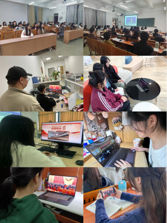 3月4日、5日,全国政协十四届二次会议、十四届全国人大二次会议分别在京开幕。yabo鸭脖官网师生第一时间收听收看全国两会盛况,通过电视、网络、广播等渠道持续关注两会动态,认真学习政府工作报告,深入领会会议精神,并结合学习工作实际开展研讨交流,畅谈感想体会。