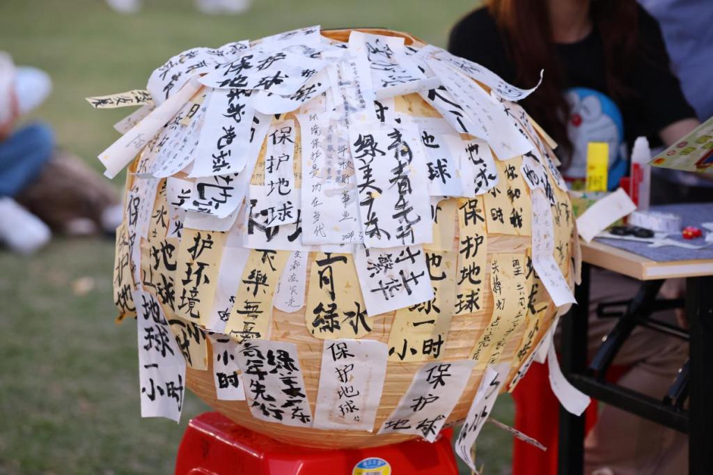 本次活动双校区、线上线下联动,吸引超过2500名学生参与其中。主要包括共绘绿色地球、报纸传递挑战、环保知识转盘大挑战、荧光夜跑以及各学生社团准备的特色小游戏、社团特色展示等环节。