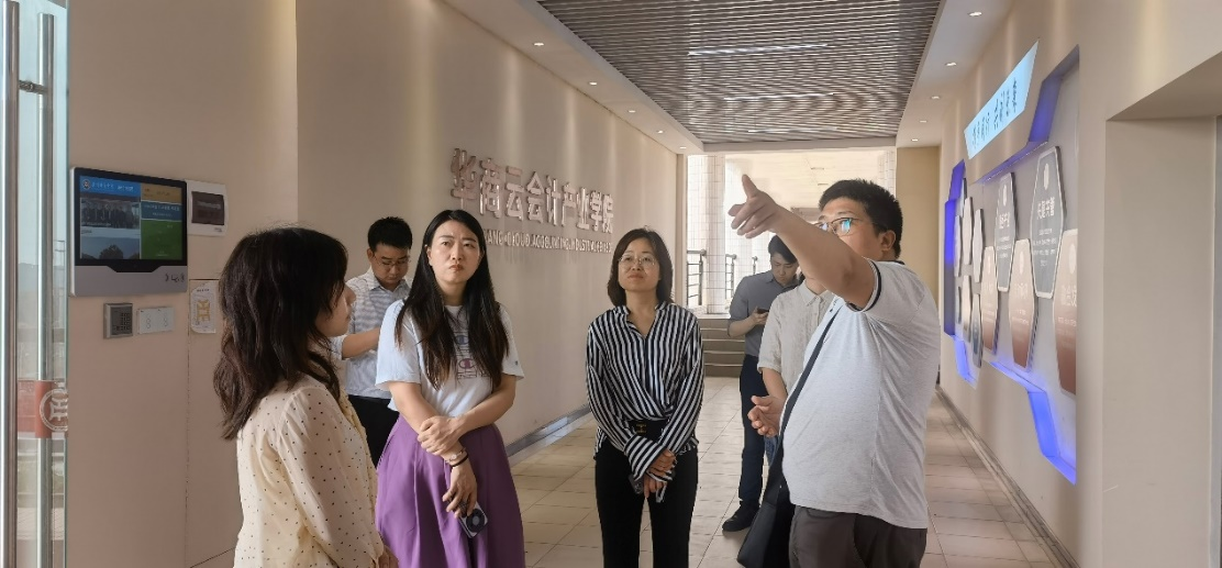 交流会结束后,李亚荣副院长一行参观了鸭脖经管类跨专业综合仿真实习平台、金融科技实验平台、大数据及人工智能交互体验中心、华商云会计产业学院等实验平台。
