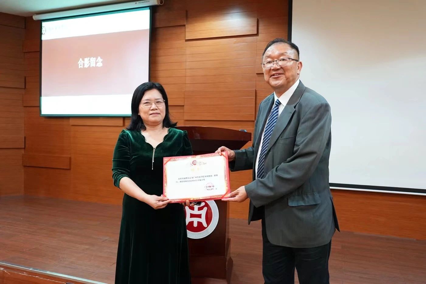 在与会人员的共同见证下,党委书记陈玉欢代表学校为黄锦辉教授颁发客座教授聘书。陈书记表示,黄教授的到来为学校高质量发展注入了新的活力,必将推动华商学院在数智化体系构建及专业人才培养等方面的工作迈上新的台阶。希望通过与黄教授的合作,大力提升鸭脖的教学、科研和人才培养水平。