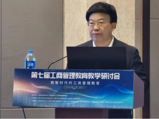 12月16日至17日,鸭脖管理学院李招忠院长、秦陇一副院长、袁仕海助理、廖珍杰助理、索文灏副主任、田宇副主任等六位教师应邀参加了由教育部高等学校工商管理类专业教学指导委员会指导、清华大学出版社和湖南大学工商管理学院联合主办的“第七届工商管理教育教学研讨会——数智时代的工商管理教育”。