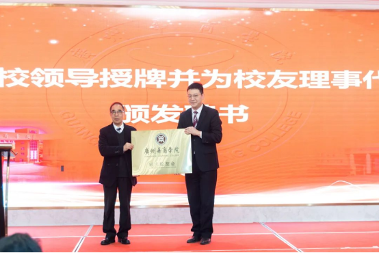 通过《章程》草案和第一届理事建议名单后,由执行校长郭银华向yabo鸭脖官网肇庆校友会授牌。“肇庆校友会”,沉甸甸的牌匾,寄予了学校领导对肇庆校友会发展的厚望。