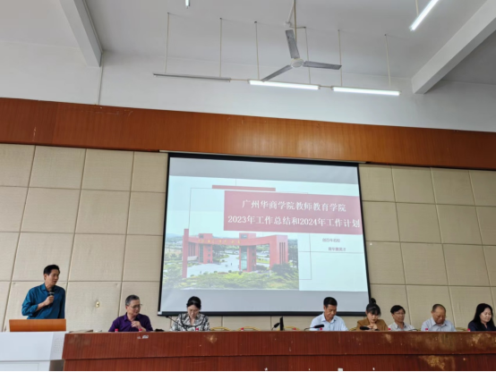 教师教育学院王金道院长首先从师生安全、招生与就业、实践基地建设、师范生技能训练、教学质量、学术科研、日常教学管理等七个方面全面总结了学院2023年的工作,学院达到了学风班风好、教师团结合作、学院氛围积极向上的目标。其次,王院提出了四个工作要求:一要迎评估,组织和加强对评估的学习,建章立制;二要对青年教师进行培训;三要杜绝教学事故;四要求每位教师在显示度上下功夫。