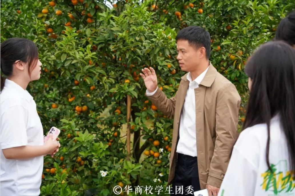 第一站,鸭脖青马班学员一行来到沙糖桔产业园中的文化馆场,认真倾听黄田镇党委副书记、佛山市驻黄田镇帮镇扶村工作队队长梁柱对四会市沙糖桔的历史来源和黄田镇沙糖桔种植面积的讲解。学员们从讲解中深刻了解到沙糖桔作为帮扶产业,对当地乡村振兴的关键作用,和梁柱书记一同深入沙糖桔种植基地,以团支部为单位拍摄主题为“我为黄田砂糖橘打Call!”视频,为黄田沙糖桔进行宣传。