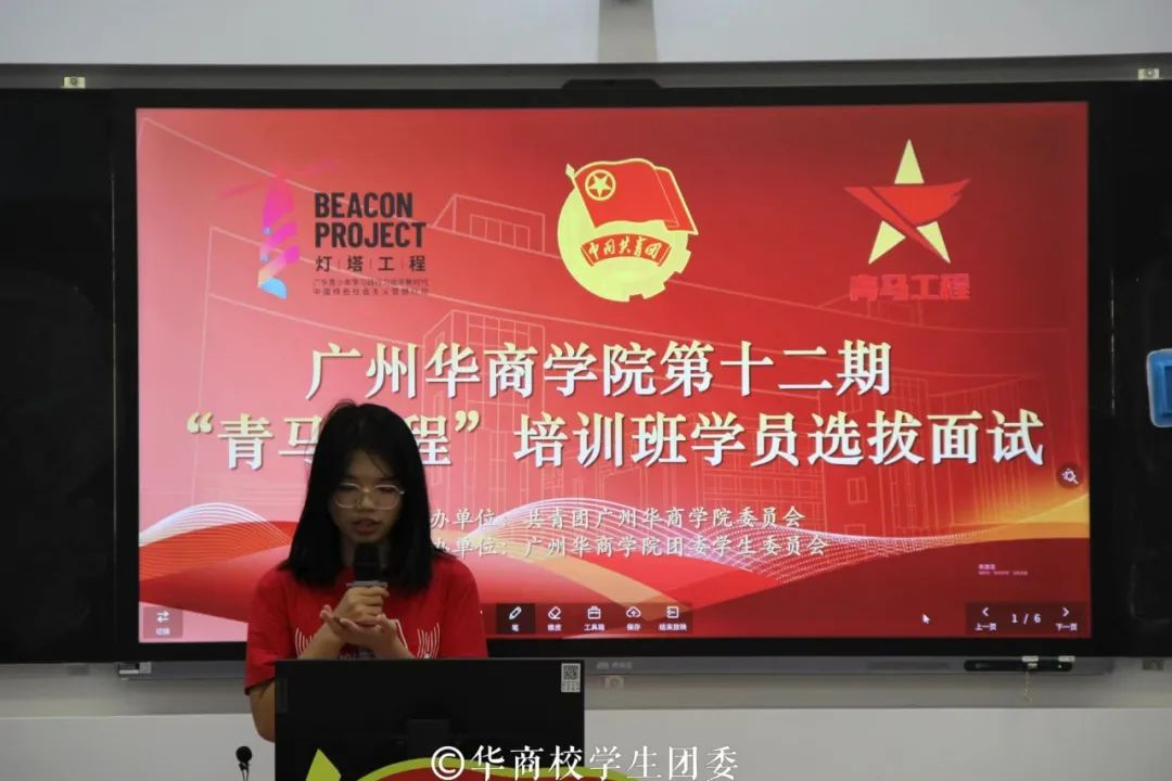 为深入学习宣传贯彻党的二十大精神,加强对华商青年思想政治引领,进一步加强和提升华商青年的政治素养和各方面素质能力,挑选一批具有正确的政治立场、浓厚的爱国情怀、扎实的理论知识、能力突出的华商青年,校学生团委于11月21日17:40分别在广州校区励志楼c301教室和肇庆校区16号楼703、704教室组织开展第十二期“青马工程”培训班面试。