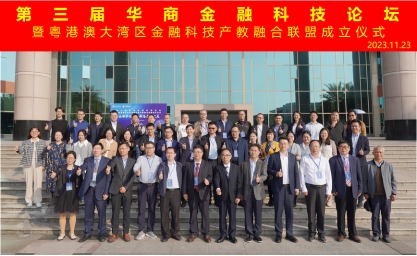 刘少波教授代表联盟发起单位致辞,他介绍了联盟成立的背景和意义以及联盟的基本定位,并指出,联盟致力于搭建一个粤港澳大湾区金融科技专业建设、人才培养和产教融合的开放式交流平台。联盟成员将通过开展各种交流活动,在金融科技专业建设、人才培养和开展产教融合等方面进行信息沟通和多渠道、多维度、多元化合作,实现成员单位之间优势互补和合作共赢。随后,郭银华、刘少波以及所有联盟发起单位代表共同为联盟成立揭牌。