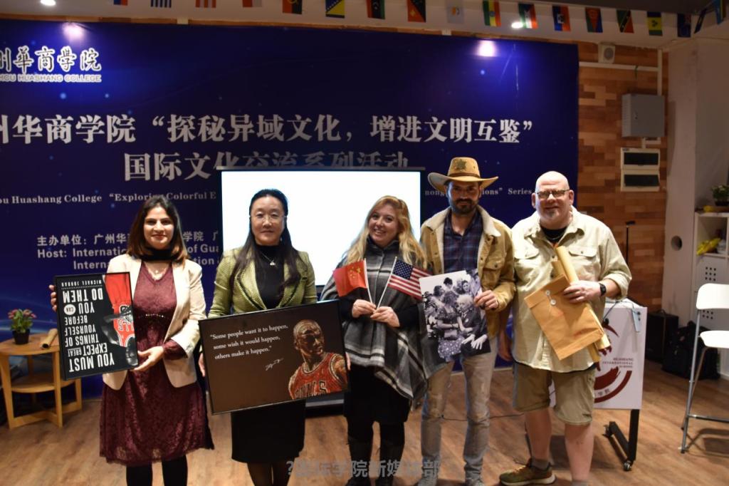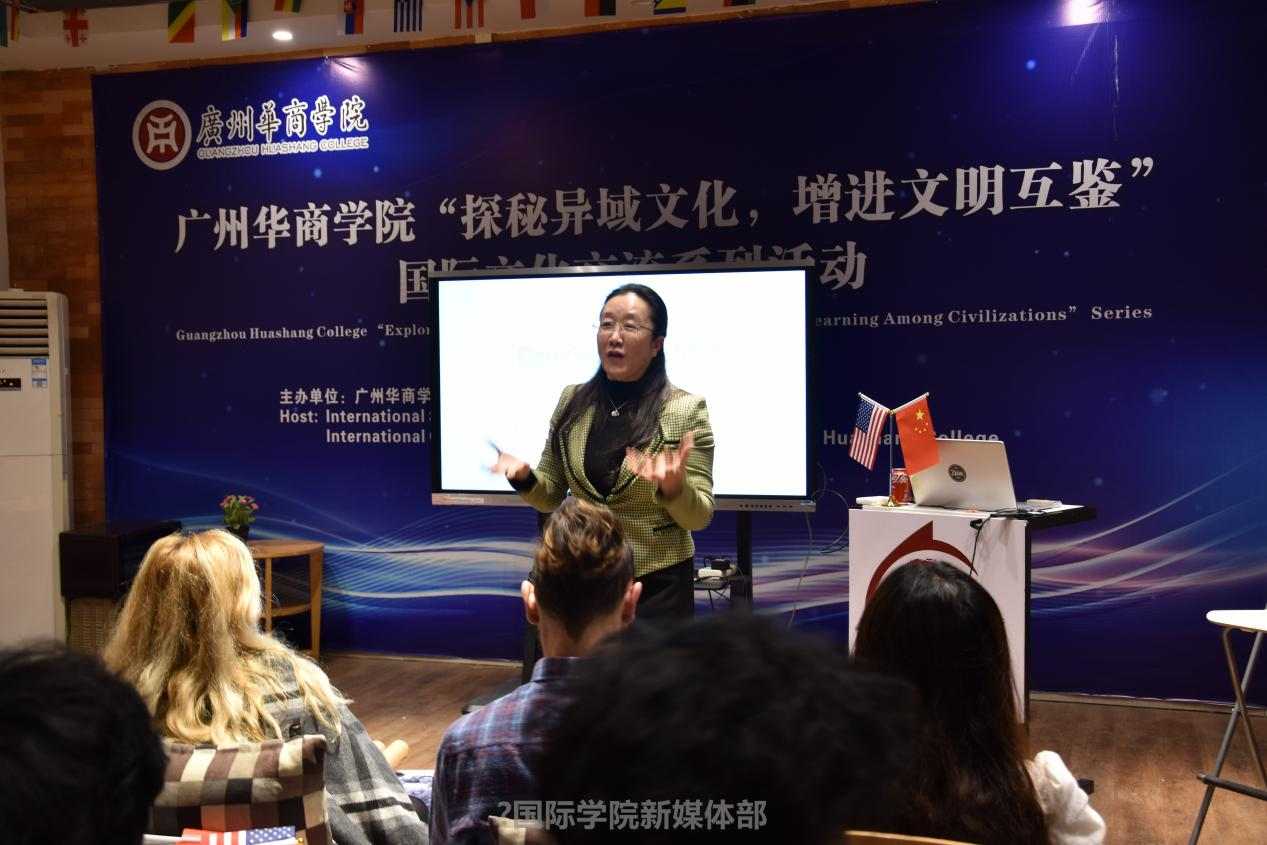 为不断丰富校园多元文化氛围,增强大学生对异域文化的了解,增进文化的包容性和同理心,2023年12月4日,yabo鸭脖官网“探秘异域文化,增进文明互鉴”国际文化交流系列活动第五期:美国文化分享会成功举办。美国籍教师John Jung担任主讲嘉宾,yabo鸭脖官网国际学院院长回雁雁、国际学院直属党支部书记兼辅导员杨李军、巴基斯坦籍教师Anella Qadir博士、土耳其籍教师Begum Firinci伉俪,以及来自国际学院、外国语学院、文学院、健康医学院、数据科学学院、会计学院、管理学院和华职国际教育学院的80多名同学参加了分享会。