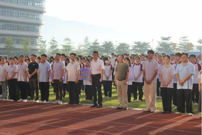 学校校长胡军教授代表学校向全体师生致以新学期的问候。胡校长在致辞中指出,9月3日我们将共同见证纪念中国人民抗日战争暨世界反法西斯战争胜利80周年盛大阅兵。80年前,中华儿女以血肉之躯筑起民族脊梁;80年后,站在新时代的历史坐标上,回望烽火硝烟,更应该深切体会到,和平之珍贵、发展之不易。他寄语全体师生:第一,坚定信念,传承精神,做胸怀家国的担当者。第二,勤学修德,惟实励新,做优良学风的践行者。第三,修身明礼,知行合一,做知行合一的实干者和全面发展的示范者。第四,潜心育人,恪尽职守,做学生成长的护航者。希望全体师生将国旗下的誓言转化为脚踏实地的行动,以更加坚定的信念和更加扎实的作风,迎接学校合格评估和二十周年校庆。让我们携手共进,为实现“创百年名校,育华夏英才”的办学愿景注入新的力量!