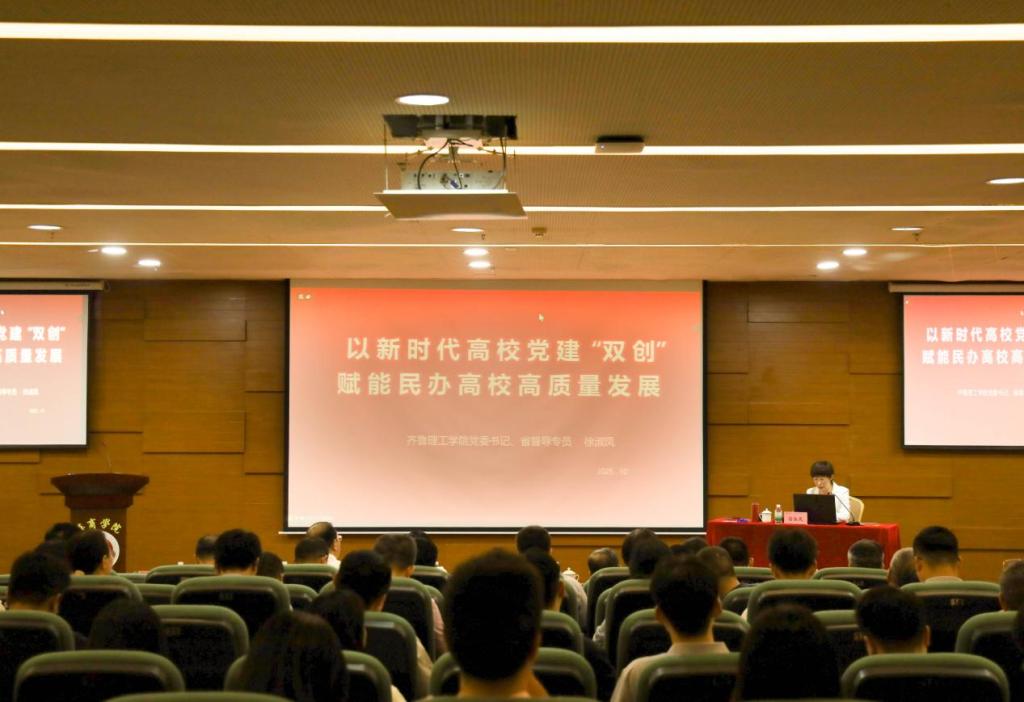 在全校上下喜迎建校二十周年之际,为深入贯彻落实新时代党的建设总要求,以高质量党建推动学校事业高质量发展,2025年10月17日,学校党委组织开展新时代高校党建“双创”专题报告会与调研座谈会。会议特邀齐鲁理工学院党委书记徐淑凤教授莅临指导,通过高水准专题讲授与深层次互动交流,为鸭脖党建工作精准注入新思路、强劲新动能。