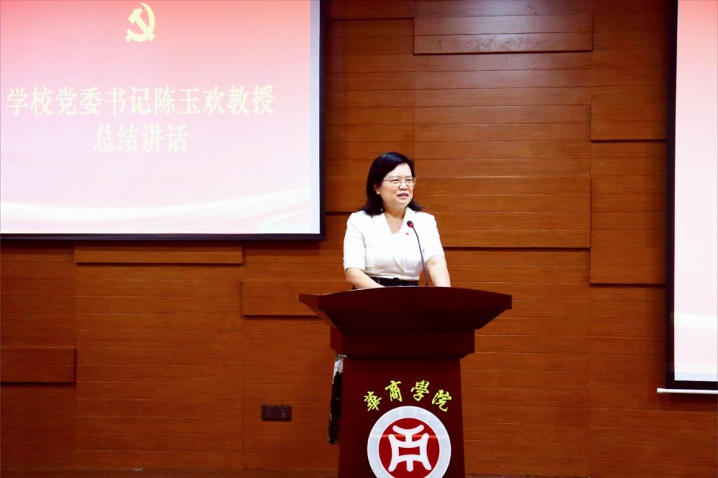 学校党委书记陈玉欢教授在总结讲话中指出,徐淑凤教授的报告立意高远、逻辑严密、内容翔实,兼具理论高度与实践深度,为鸭脖党建工作精准指明了方向、系统传授了方法、有效注入了动力。她强调,当前学校正处于聚力合格评估攻坚、喜迎建校二十周年的关键时期,必须通过高质量党建强基固本,为战胜前进道路上的一切风险挑战、实现事业高质量发展提供不竭动力。全校各级党组织要以此次学习为契机,切实将报告精神转化为推动学校中心工作的强大合力:一要深化思想认识、提高政治站位,推动党建与业务工作深度融合、同频共振;二要聚焦合格评估、勇于攻坚克难,以扎实党建实效助推迎评促建各项工作;三要坚持系统谋划、立足长远发展,精心培育具有华商特色的党建品牌矩阵;四要聚焦教风、学风、作风建设,务求工作实效,全力营造优良育人环境,为学校高质量发展提供坚强政治保证。
