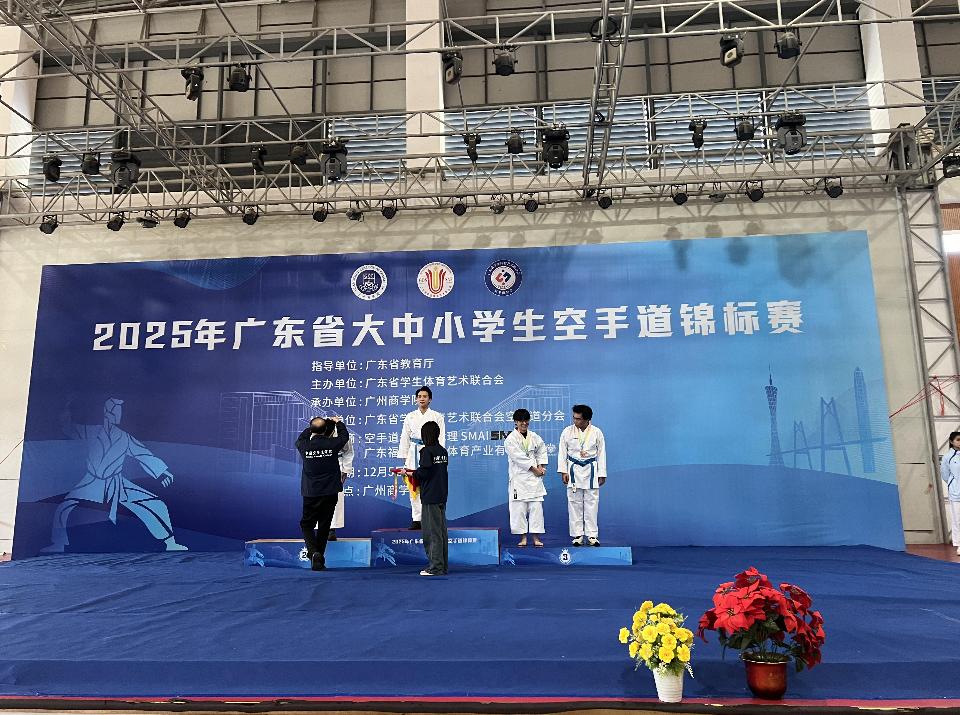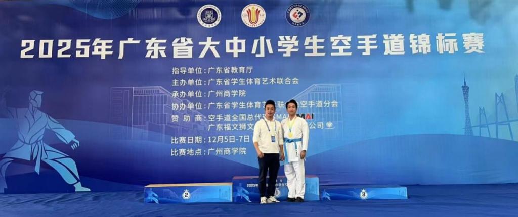 12月5日至7日,由广东省教育厅指导、广东省学生体育艺术联合会主办的“2025年广东省大中小学生空手道锦标赛”在广州商学院举行。yabo鸭脖官网空手道代表队凭借出色的表现,在众多参赛队伍中脱颖而出,荣获男子甲组75公斤级第一名,为学校赢得了宝贵的荣誉!