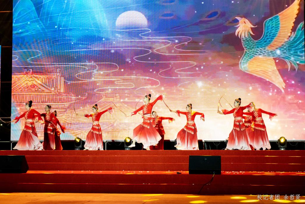 教职工舞蹈团演绎的《盛世》,以古典舞的柔美舞姿为载体,队员们身着飘逸舞衣,用舒展的肢体动作勾勒出盛世华章的唯美画卷,既展现了教职工的艺术风采,也饱含对学校发展的美好祝愿。