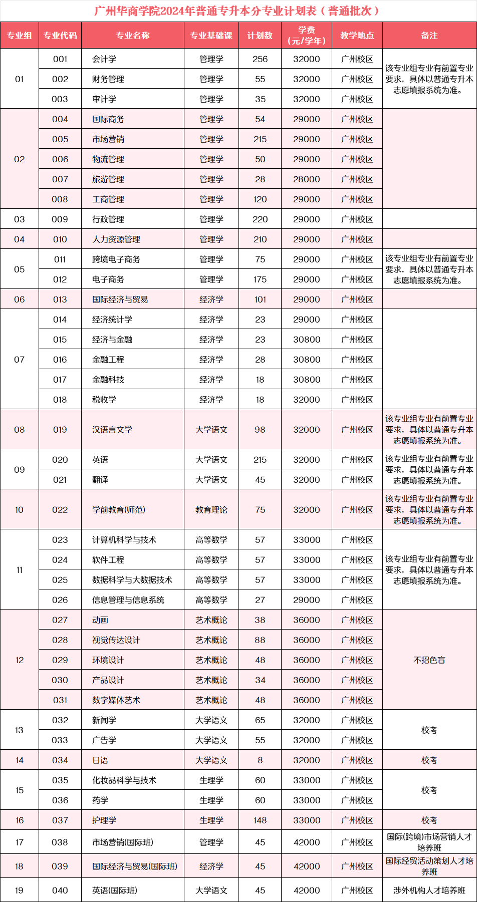 ●以上招生专业、计划数、专业代码、收费标准及录取批次等以广东省招生办公室公布为准。