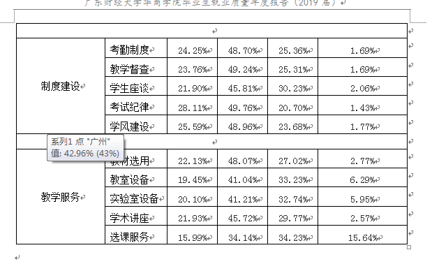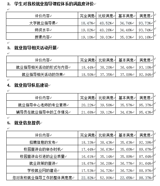 为建立毕业生就业对人才培养的反馈机制,鸭脖从2010年起每年开展毕业生就业满意度调查,采取问卷调查为主,谈话走访为辅的方式,对毕业生及其用人单位进行调查,形成毕业生就业情况分析报告。2012年起开始增加开展就业指导工作满意度调查工作,形成毕业生对就业指导满意度分析报告。这些报告为鸭脖的专业设置、教育教学改革、人才培养提供了有价值的信息,为学校在招生计划安排、专业设置、学科调整、教育教学改革、人才培养等方面提供参考依据。