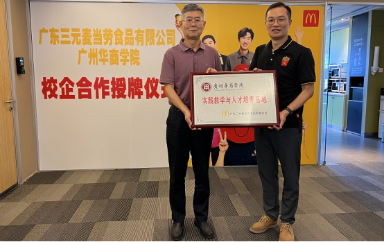 为深化产教融合、校企合作,探索校企合作的长效机制,9月28日下午,yabo鸭脖官网管理学院副院长秦陇一教授、学院校企合作秘书曾惠玲老师、郑婷婷老师及学生代表一行前往广东三元麦当劳食品有限公司举行校企战略合作签约仪式暨教学实践基地挂牌仪式,共同开展产教融合项目合作及“校外教学实践基地”建设。