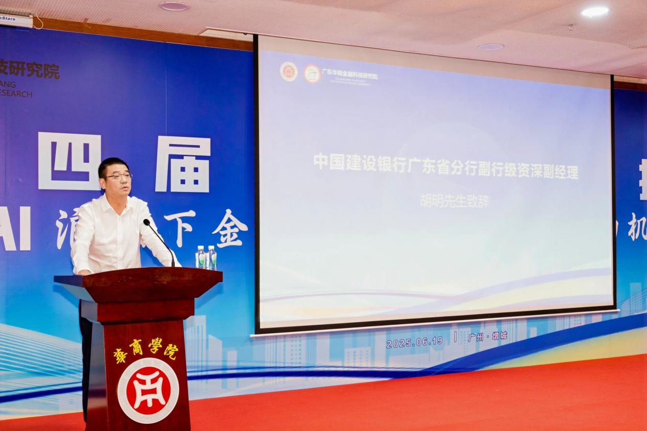 中国建设银行广东省分行副行级资深副经理胡明先生就AI在金融领域发展情况以及中国建设银行AI应用实践这两方面发表致辞演讲。