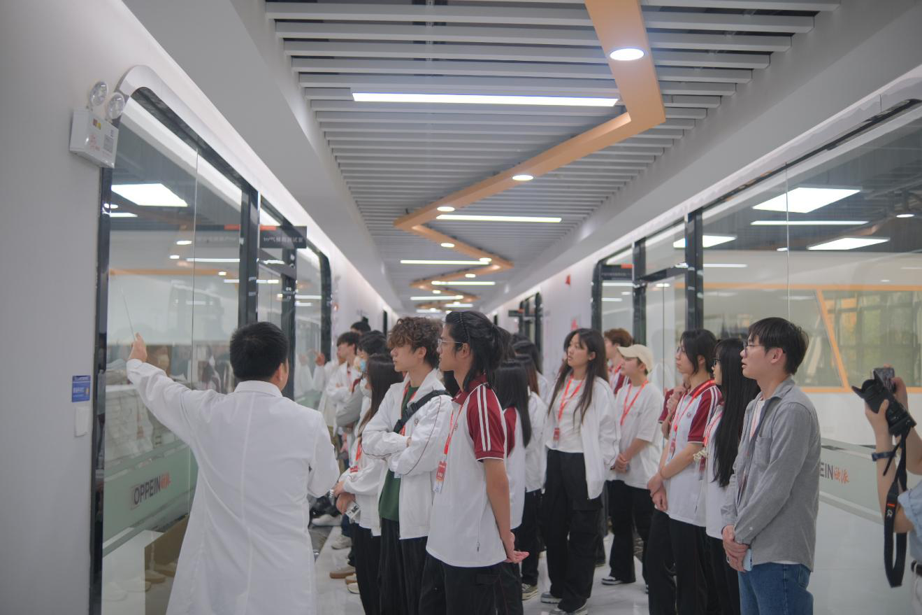 在本场研学活动中,同学们印象最深刻的是在实验室的体验。欧派清远基地实验室,作为行业领先的智能化检测中心,具备国家级科研资质,配备国际尖端设备,如AI质检机械臂、纳米级材料分析仪等。实验室工程师带领同学们全程导览,介绍并揭秘了家居环保与品质背后的硬核科技,强化了“品质看得见”的品牌信任。