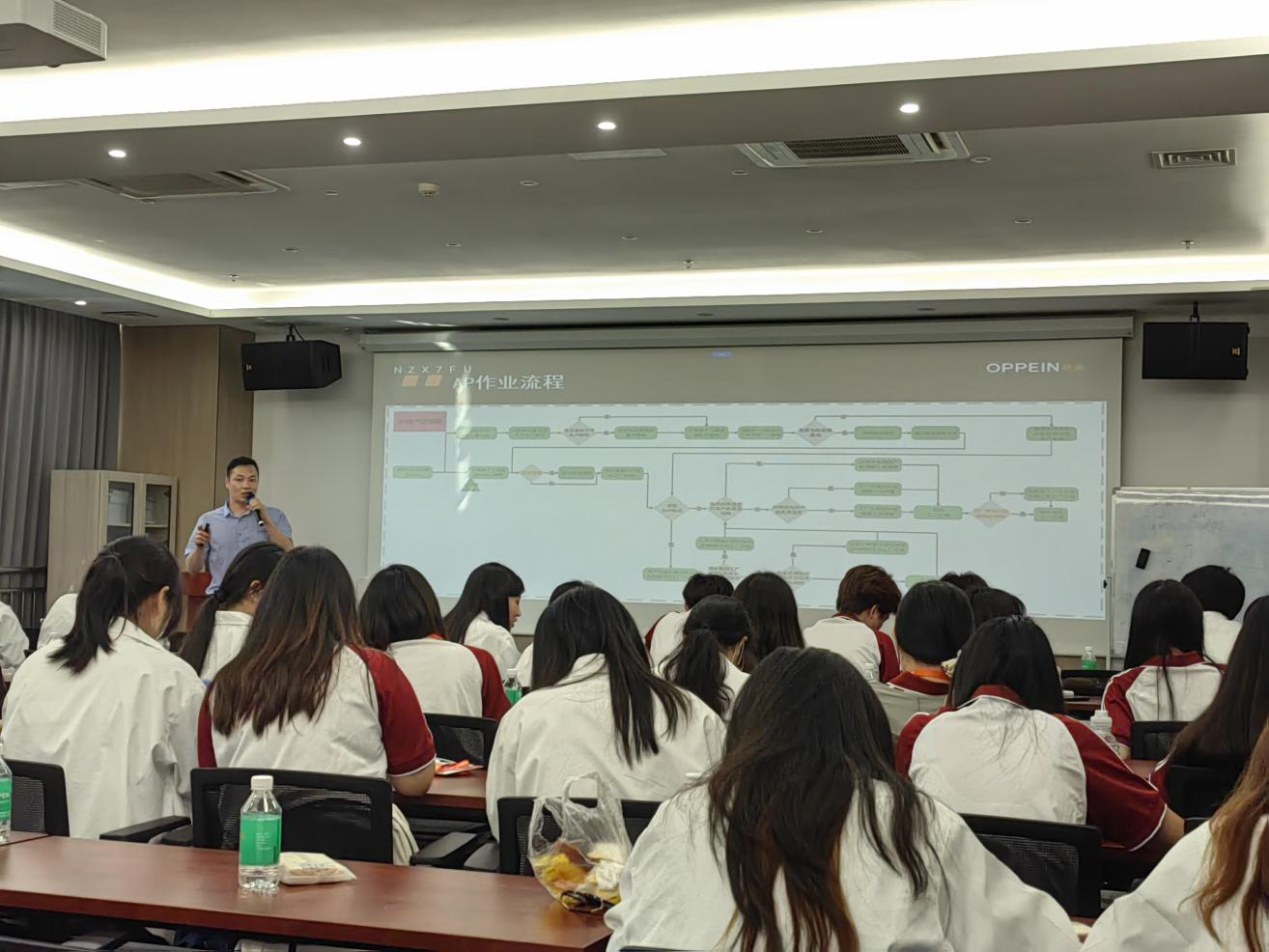 讲座环节由欧派家居数字化领导介绍“欧派交付数字化解密”,阐述了如何运用数字化手段解决欧派的订单、生产制造、智慧物流等数字化全流程问题,让同学们对数字技术赋能传统行业有了更深入的理解。