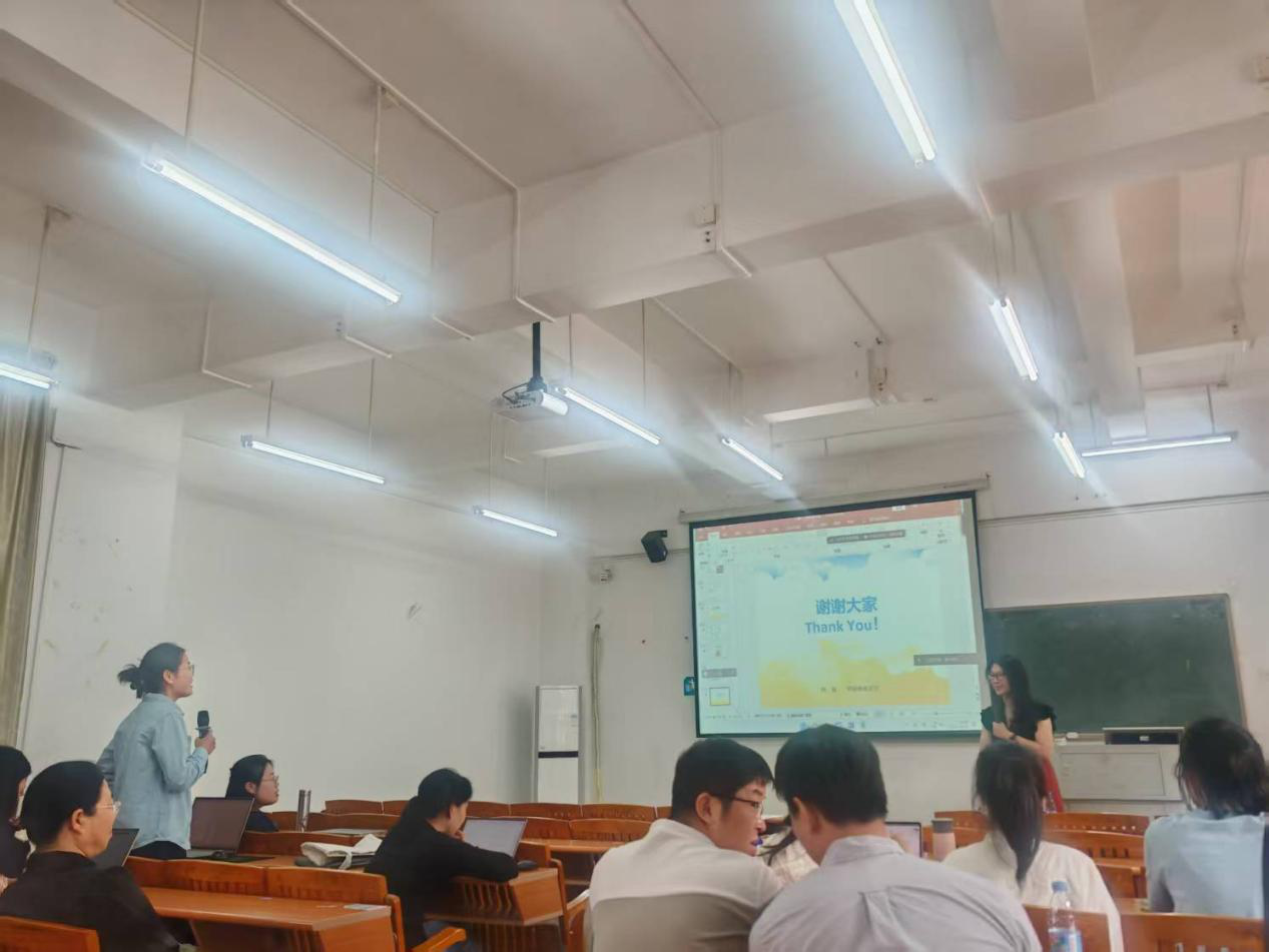 讲座结束后,现场气氛热烈,老师们积极踊跃提问。问题涵盖产出导向法在不同课程类型中的应用细节、AI工具与传统教学融合的平衡点、小组合作中有效引导学生的方法等多个方面。冯茵副教授耐心细致地逐一解答,结合自身丰富的教学经验给出切实可行的建议,令参与讲座的老师们受益匪浅。