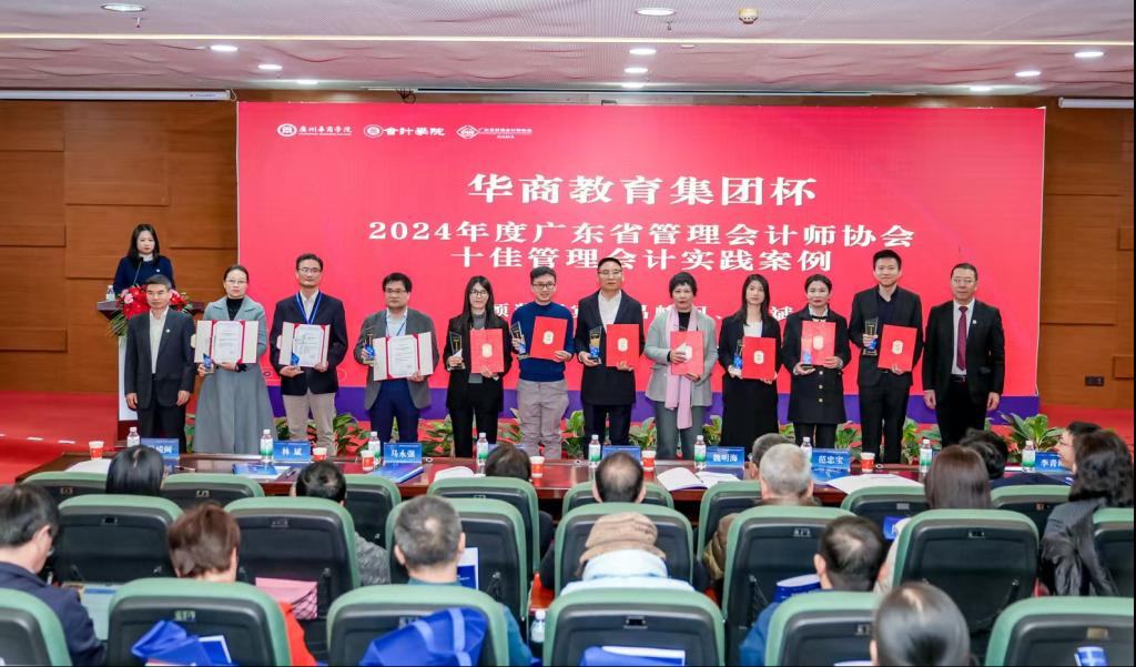 颁奖仪式由广东省管理会计师协会党支部书记兼常务副秘书长杜娟主持,由吕峻闽、林斌、刘中华、姚凤民四位教授作为颁奖嘉宾颁发2024年度广东省管理会计师协会十佳管理会计实践案例和十佳财务领袖奖项。