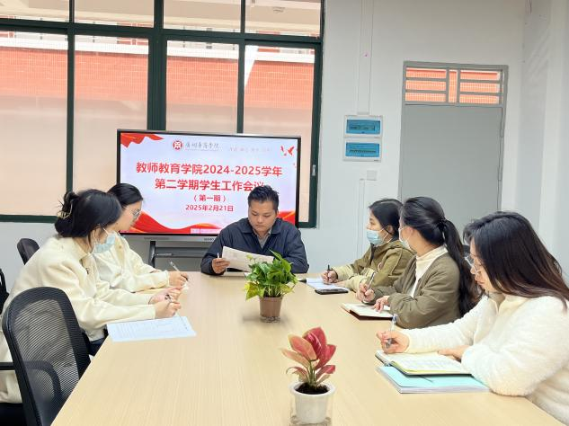 为高效推进学院各项学生工作,提升辅导员队伍的凝聚力和战斗力,明确新学期学生工作目标与方向,2025年2月21日下午,教师教育学院学生工作办公室在创新楼204会议室召开学生工作会议,肇庆校区辅导员线上参会。会议由学生工作办公室副主任江庆基主持,会议传达了学校学工会议要求和学院院务会工作精神,部署了新学期学生工作,并围绕学生工作的多个关键领域展开了深入研讨。