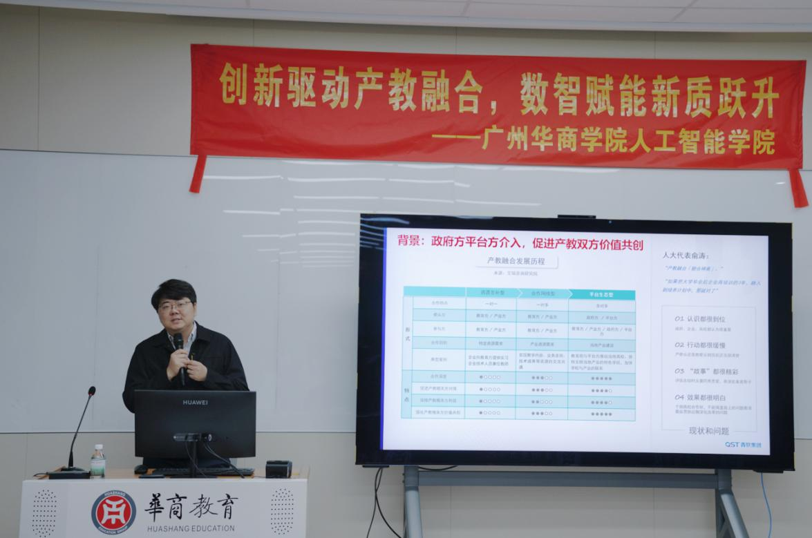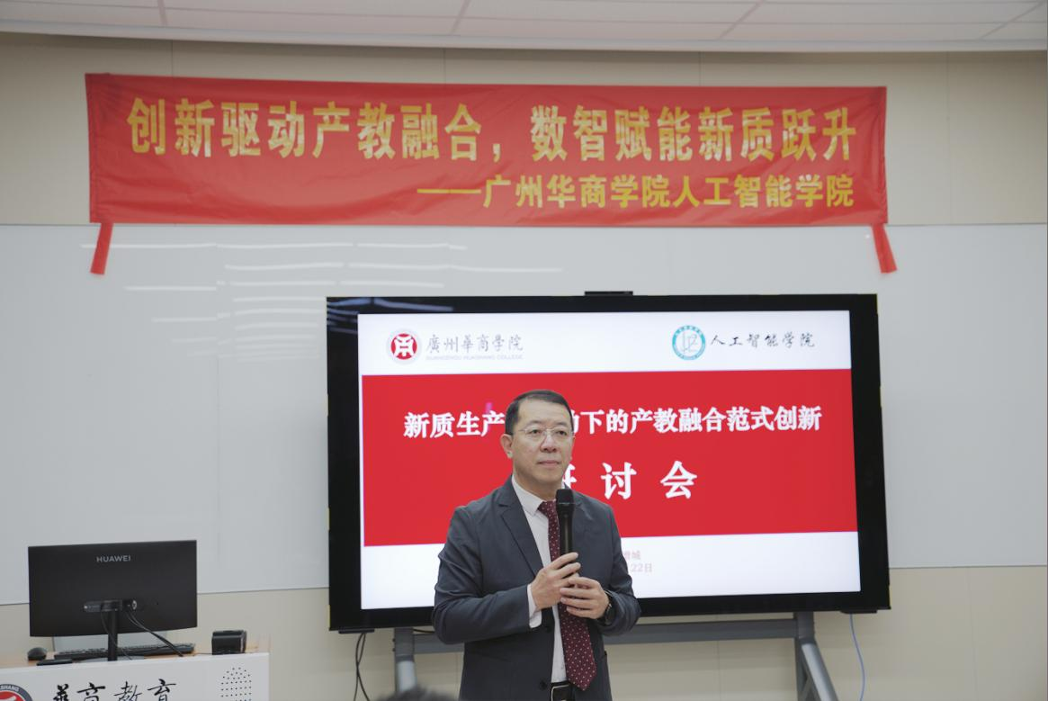 2025年3月22日下午,yabo鸭脖官网人工智能学院在弘美楼310室成功举办了主题为“新质生产力驱动下的产教融合范式创新”的研讨会。此次研讨会汇集了学术界与产业界的多位专家和领导,共同探讨在人工智能时代下,如何通过产教融合的新模式与新路径,促进教育与产业的深度结合,培养适应未来科技发展的高素质人才。出席研讨会的嘉宾与领导包括:华为智能化研发技术专家付求爱,青软创新科技集团股份有限公司副总裁韩涛,东莞理工学院工业软件学院副院长丁凯,yabo鸭脖官网党委副书记、纪委书记兼副校长吕峻闽,人工智能学院副院长叶仕通,党委副书记兼副院长陈洋广,院长助理洪绍勇、杨本胜,以及人工智能学院全体教师。研讨会由yabo鸭脖官网人工智能学院党委书记、副院长杨波主持。