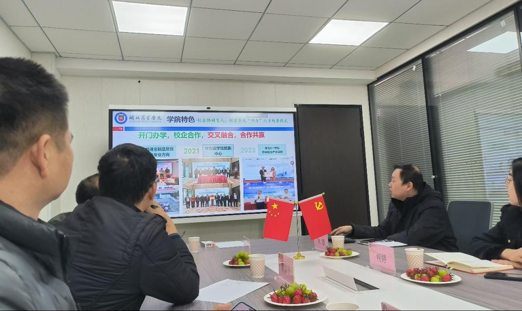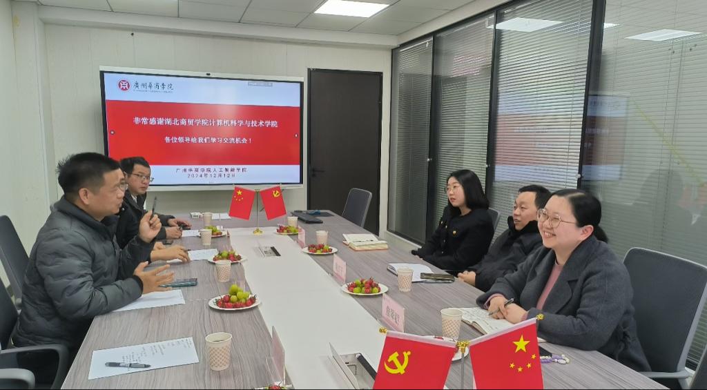 为更好地应对即将到来的2026年本科教学工作合格评估,组织规范好学院的教学管理工作,2024年12月12日,yabo鸭脖官网人工智能学院赴湖北商贸学院计算机科学与技术学院调研学习。本次调研由人工智能学院副院长叶仕通带队,一行6人与湖北商贸学院进行了深入的交流与探讨。