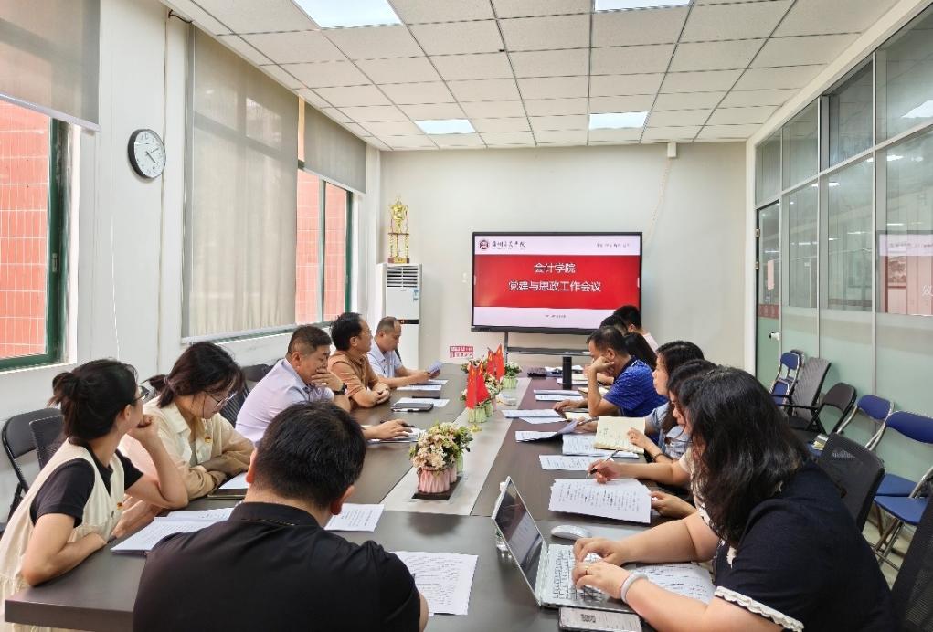 为深入贯彻落实新时代党的建设总要求和党的教育方针,2025年9月9日,会计学院党委召开党建与思想政治工作会议,会议由校党委党校常务副校长兼会计学院党委书记刘善球主持。学院党委班子成员、师生党支部书记、教工党支部班子成员出席会议。会议聚焦“构建大思政格局、深化三风建设、强化基层党建”主题,并就下一阶段全面加强党建与思想政治工作作出部署。