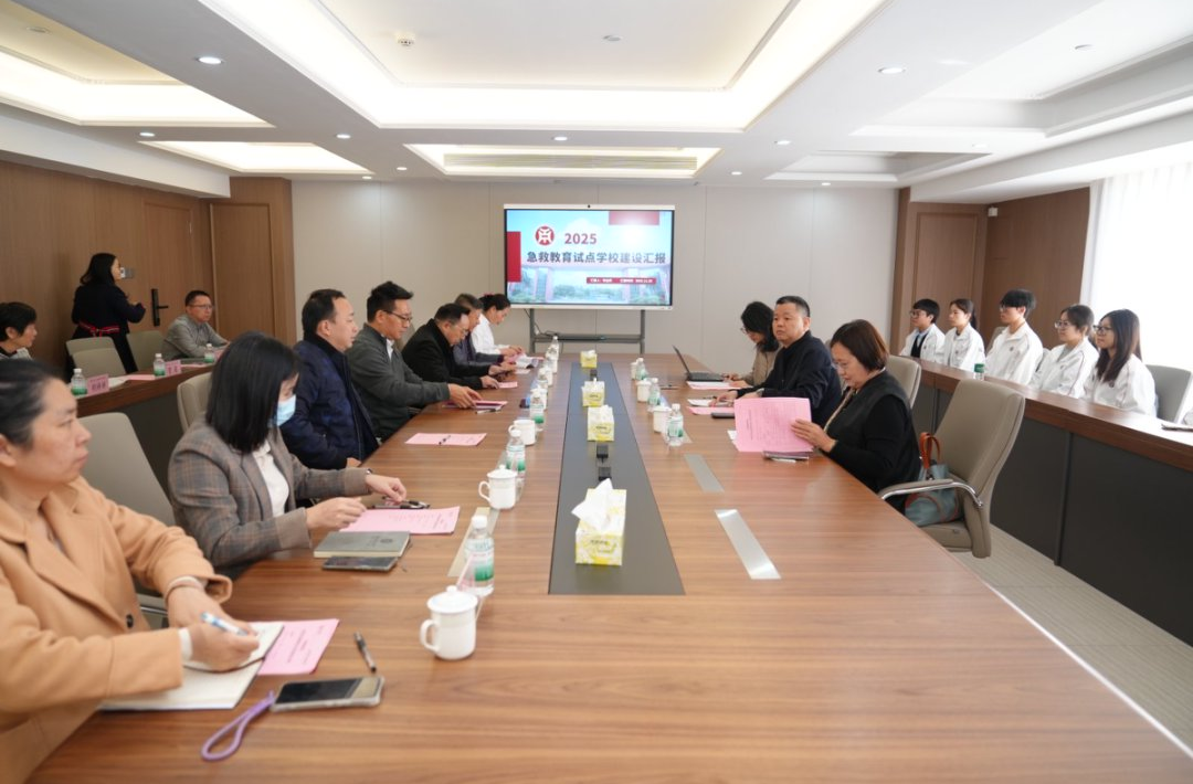 2025年11月28日上午,由省市相关部门专家组成的急救教育试点建设调研指导组(以下简称“指导组”)一行莅临yabo鸭脖官网,对鸭脖建设急救教育试点工作进行实地调研与指导。校长助理李远飞、学校办公室主任蒋大锐、健康医学院院长周光雄、副院长翁开源,以及相关部门负责人陪同考察。
