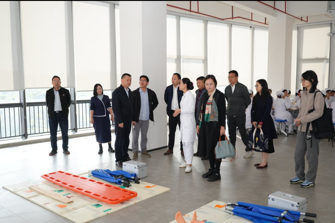 指导组首先走访了健康医学院,走进护理专业课堂、参观模拟病房及急救技能实训中心,对鸭脖办学理念、师资力量以及教学设施给予了高度评价。在参观过程中,健康医学院完善的医学教育体系和专业的实训场地,充分证明了鸭脖具备开展高质量、规模化急救教育所需的坚实基础和核心优势。指导组指出,依托健康医学院专业力量,学校急救教育工作有望实现“高起点、专业化、可持续”的发展目标。