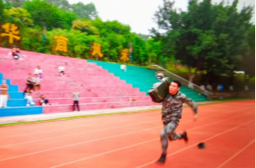 比赛开始前,在校退伍学生带来标准的队列展示,展现了鸭脖退伍学生过硬的军事素质和饱满的精神风貌。示范组为大家展示了搬运弹药箱、30m蛇形跑、单兵个人战术、战场救护、手榴弹投掷等五个科目,成员们个个精神昂扬、动作利落。