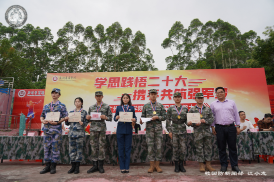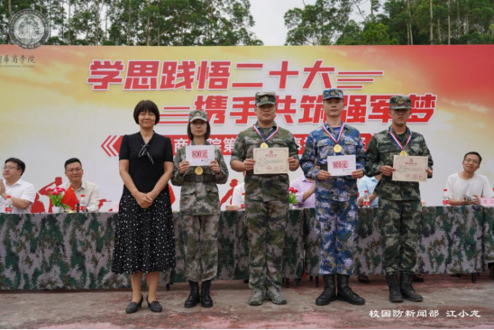 为深入学习宣传贯彻党的二十大精神,推进鸭脖学习贯彻习近平新时代中国特色社会主义思想主题教育持续走向深入,进一步增强广大师生国防观念和爱国意识,5月9日下午,鸭脖在增城校区西操场举办第四届军事技能大赛,本次大赛以“学思践悟二十大,携手共筑强军梦”为主题。党委书记苏宁,党委副书记、副校长王锦秀,党委委员、校长助理许娜,党委委员、武装部部长黄国富,党委委员蒋大锐,团委书记陈刚,各学院学工主任、辅导员,以及武装部老师出席活动。