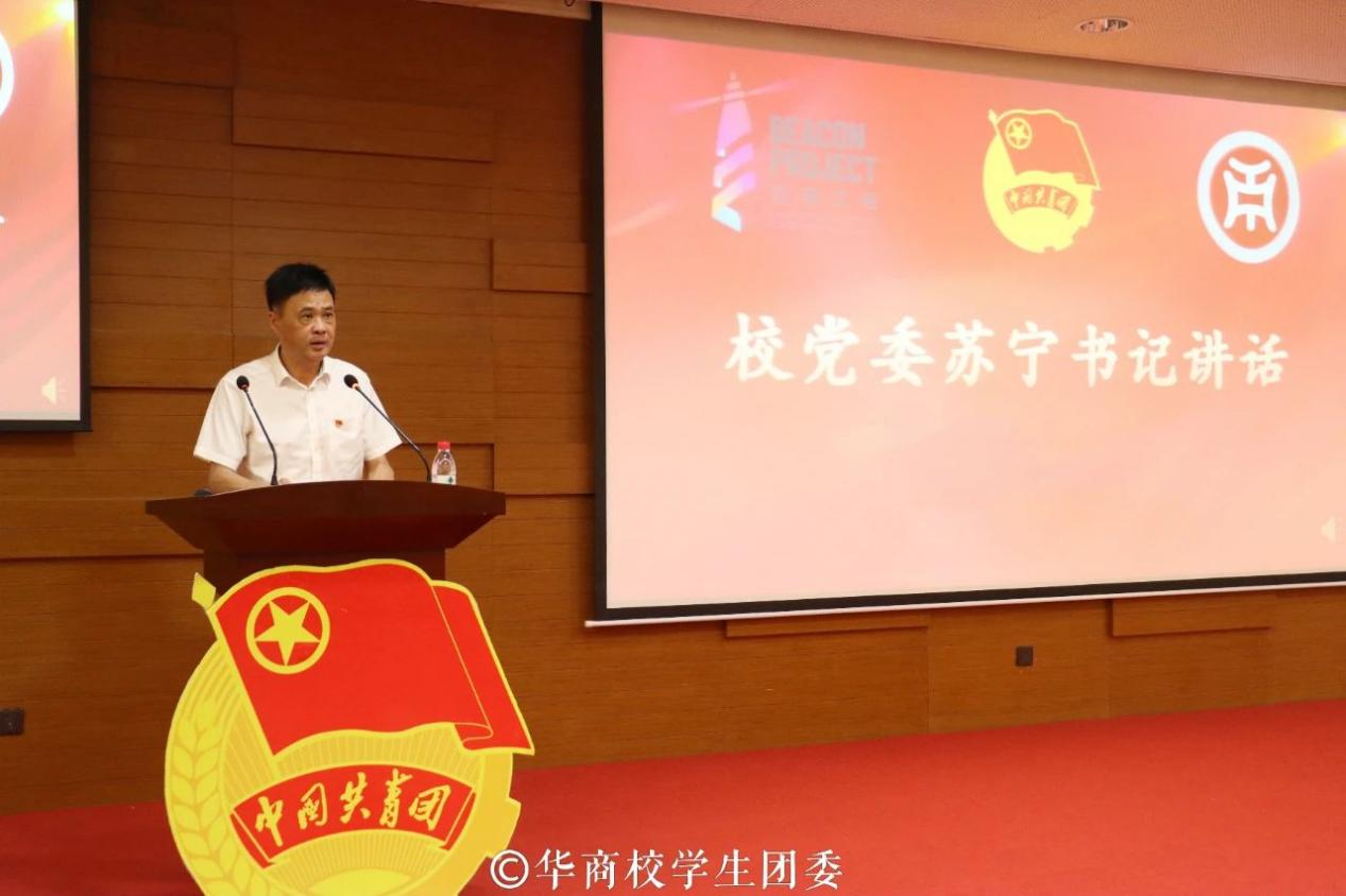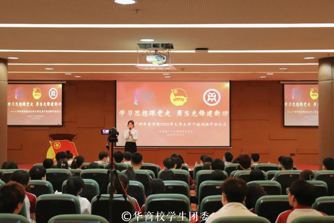 为深入学习贯彻习近平新时代中国特色社会主义思想和党的二十大精神,推动广大学生骨干明确责任与使命,用科学理论武装头脑、指导实践,帮助大学生骨干坚定跟党走的信念,成长为中国特色社会主义事业的合格建设者和可靠接班人,5月25日,“学习思想跟党走 勇当先锋建新功”yabo鸭脖官网2023年大学生骨干培训班开班仪式在图书馆报告厅举行。学校党委书记苏宁、校团委书记陈刚、各二级学院团委书记及增城、四会校区301名学生骨干线下、线上参加开班仪式。