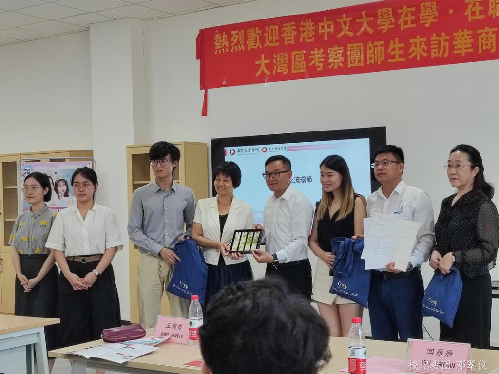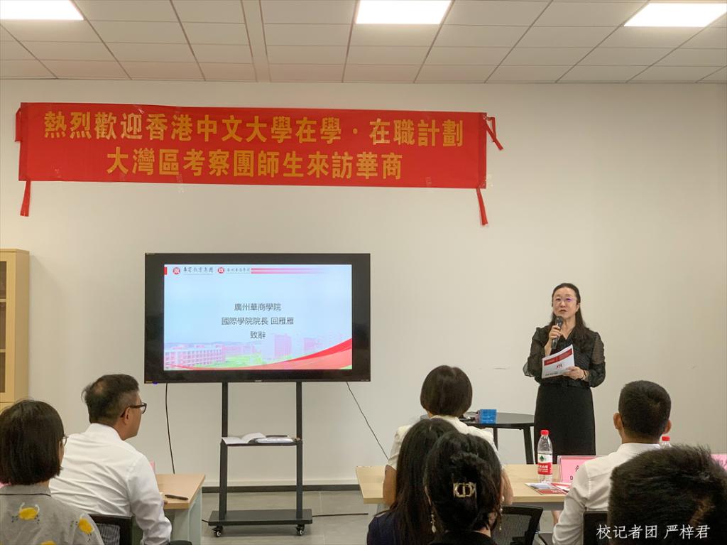 为深入了解粤港澳大湾区教育发展状况,进一步推进教育教学水平提高,实现优秀资源共享,近日,香港中文大学在学·在职计划教育部总监赖汉荣、助理总监傅贝诗、职涯组助理经理黄晓欣,香港中文大学考察团学生等一行代表团参访yabo鸭脖官网增城校区,与鸭脖代表在创科楼进行座谈交流。yabo鸭脖官网副校长王锦秀、广州华商职业学院副校长余家军、yabo鸭脖官网国际学院院长回雁雁以及yabo鸭脖官网学生代表参加本次座谈。本次座谈由广东华商教育集团学术专员陈雯姗主持。