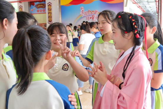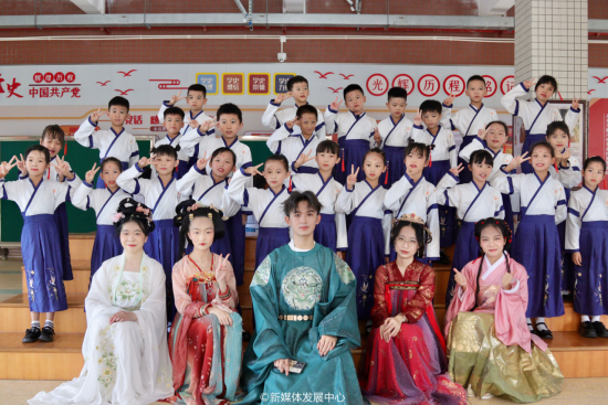 身着不同形制汉服的同学们轻舒广袖,在优雅的古风伴奏声中,款款而行,仿佛穿越时空。举手投足间尽显中华礼仪之美,展示中华传统服饰独特的韵味和美感。活动结束后,鸭脖华韵文华社的同学们积极与小学生们互动,为他们讲解和传达汉服、中华文化相关的小知识,让清燕小学的同学们充分感受传统文化和汉服的魅力。