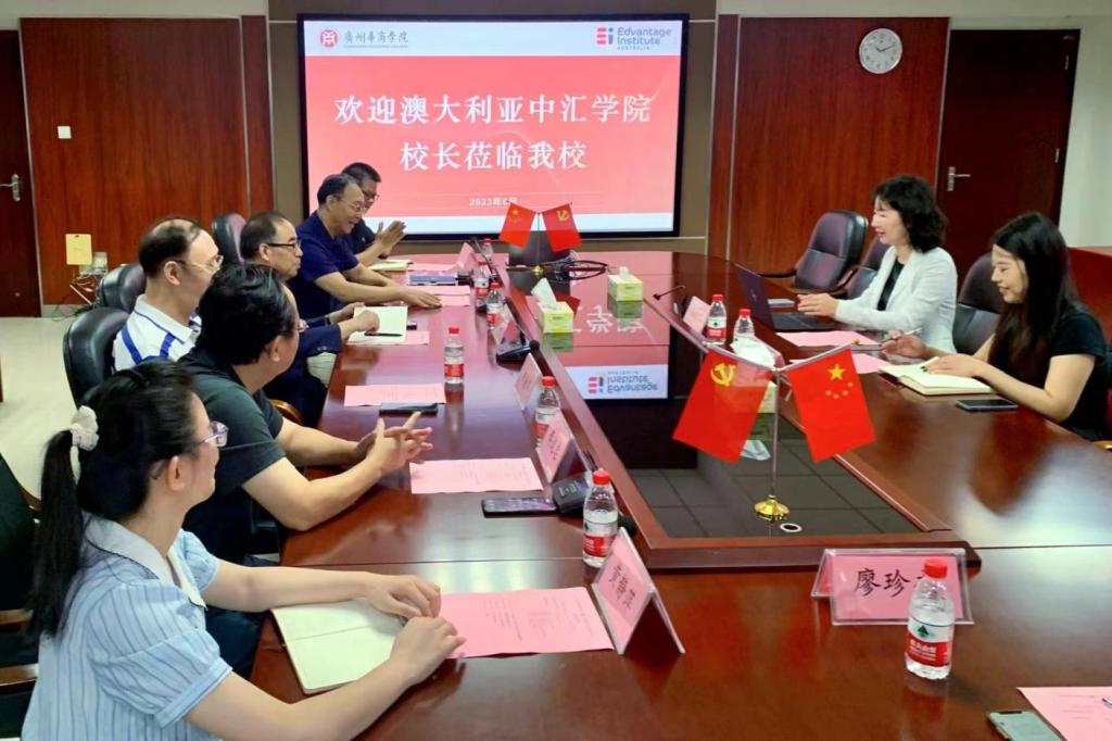 6月26日上午,澳大利亚中汇学院(Edvantage Institute Austrilia 简称:EIA)校长Celina YU博士来访鸭脖。执行校长郭银华、副校长陈美华、教务处处长傅道忠、副处长黄静萍、数据科学学院副院长叶仕通、管理学院院长助理廖珍杰、国际交流与合作处处长王文忠等热情接待了中汇学院校长一行。