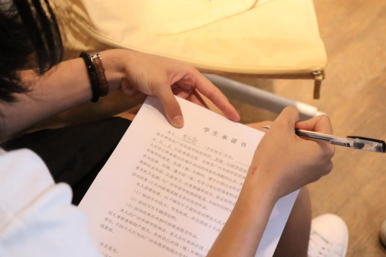 两校区领队老师安排同学们签署学生承诺书,并再次强调出行安全及研学相关注意事项。