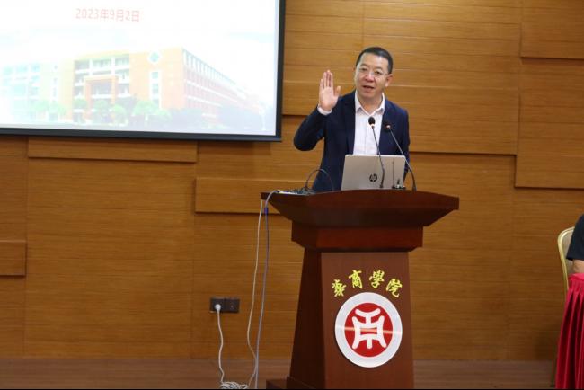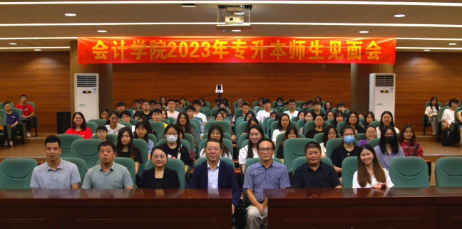 2023年9月2日,yabo鸭脖官网会计学院在增城校区举行2023年专升本师生见面会。主会场设在学校中央图书馆报告厅,并在励志楼B207、C408设立分会场。吕峻闽副校长出席了见面会,主持学院工作的副院长刘善球、副院长周书域、院长助理陈蒙梦、学工办副主任杨烨瀚、年级副主任关慧慧、辅导员老师以及2023年专升本全体新生参加了会议。会议由周书域副院长主持。