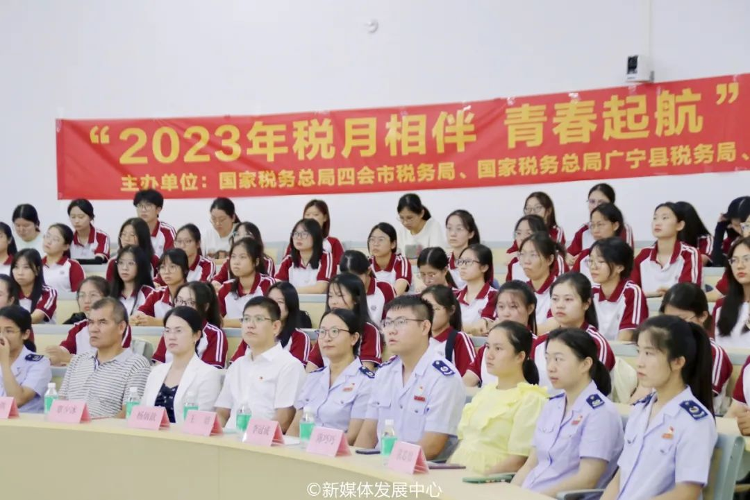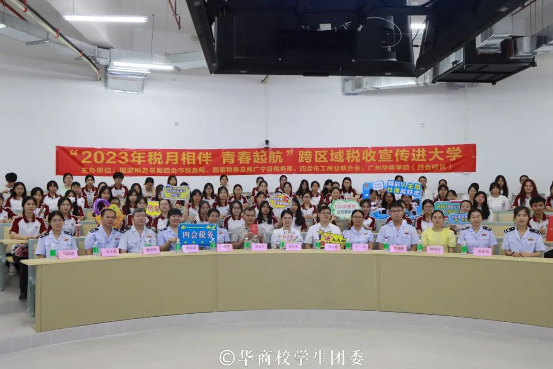 为助力大学生走稳走好创业就业第一步,推进校园税收普法教育和学生税收实践相融合,9月20日,国家税务总局四会市税务局、国家税务总局广宁县税务局、四会市工商业联合会联合鸭脖开展的2023年“税月相伴 青春起航”跨区域税收宣传进大学活动顺利举办。yabo鸭脖官网校长助理、四会校区党委副书记、管委会常务副主任覃少冰,四会市税务局党委委员、副局长杨炳歆,四会市工商联会员部部长梁金洪,广宁县税务局第一税务分局局长王培以及税务局、工商联、yabo鸭脖官网(四会校区)相关工作人员参加本次活动。